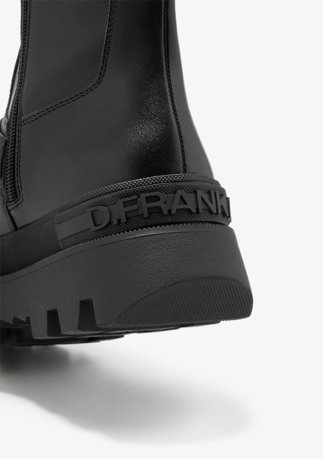This D.Franklin model in black features an inner zipper on one side for a perfect fit. Its track-style sole provides unmatched grip. It features our logo and emblem embossed on the wedge and toe. Additionally, it has the iconic buckle details on the lower and upper part, adding to its characteristic aesthetic.