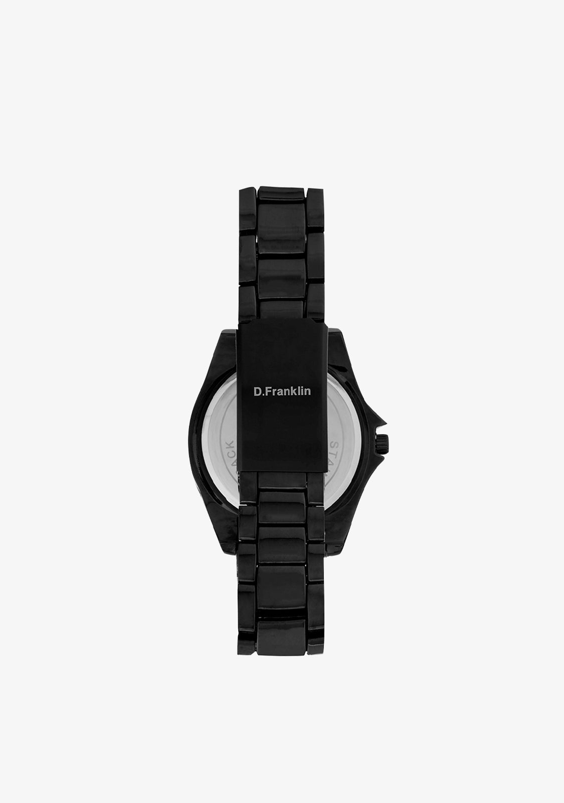 D.Franklin's AVIATOR BLACK VIOLET features a 3 hand mechanism and adjustable stainless steel band of 3 links.
