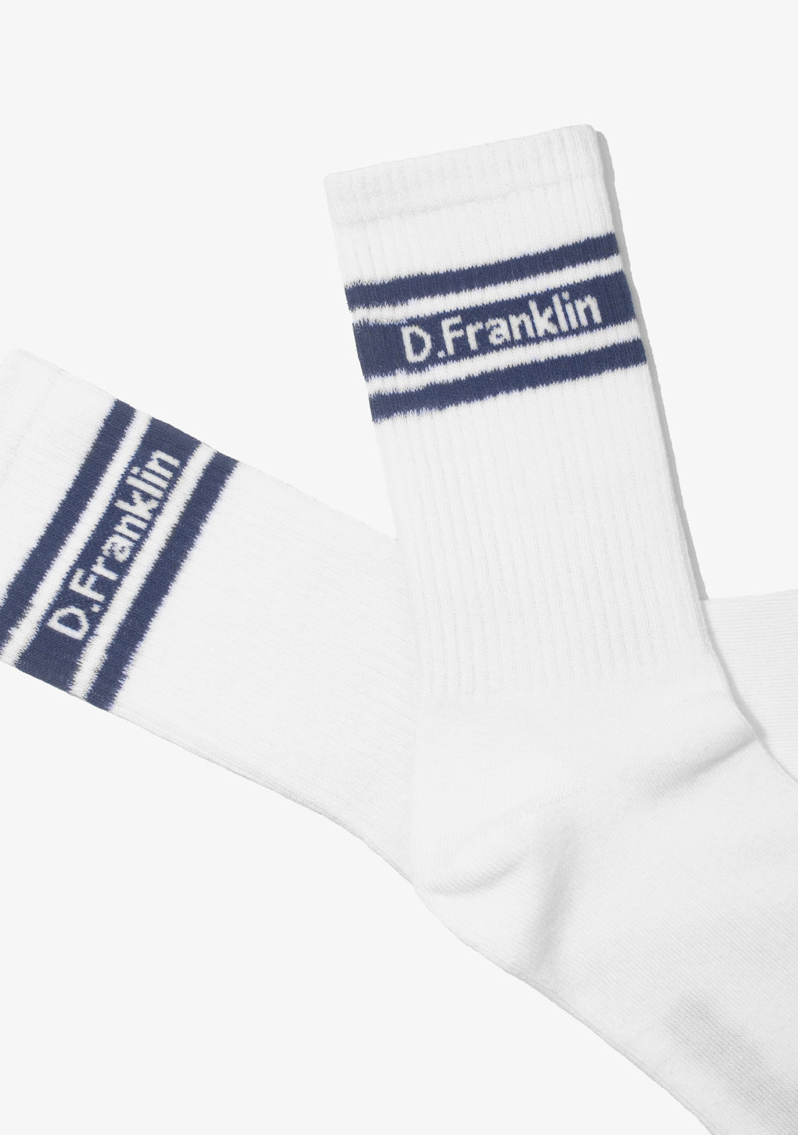 The pack includes three pairs in white with contrast stripe details in blue, navy and grey, each one signed with D.Franklin branding for an easy, recognizable look.