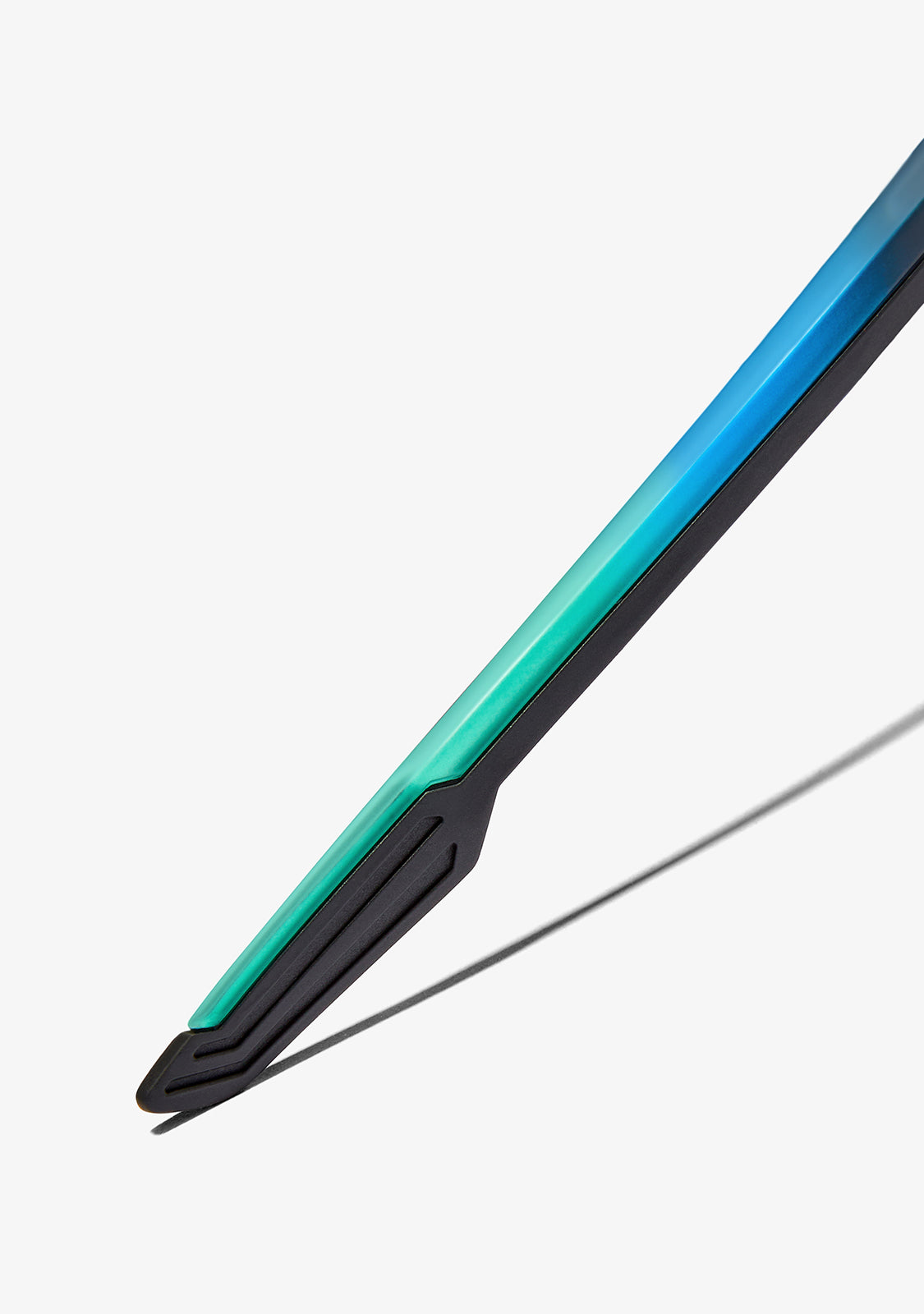 Sport sunglasses with a curvilinear aesthetic. Enter the eye of the storm with a design inspired by the energy and speed of hurricanes.