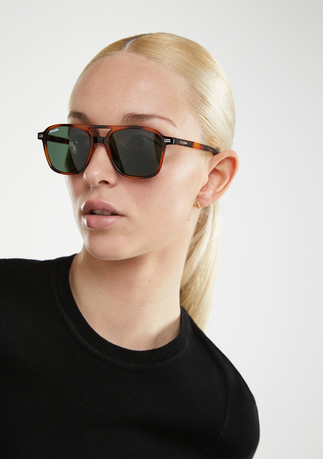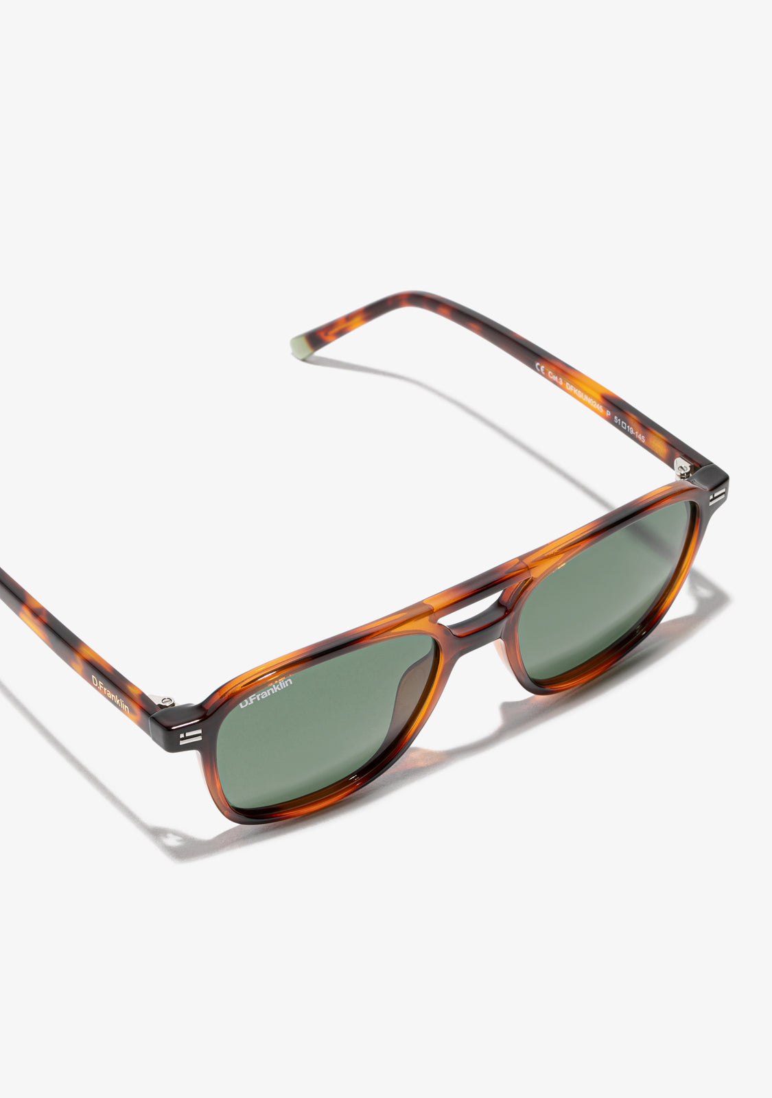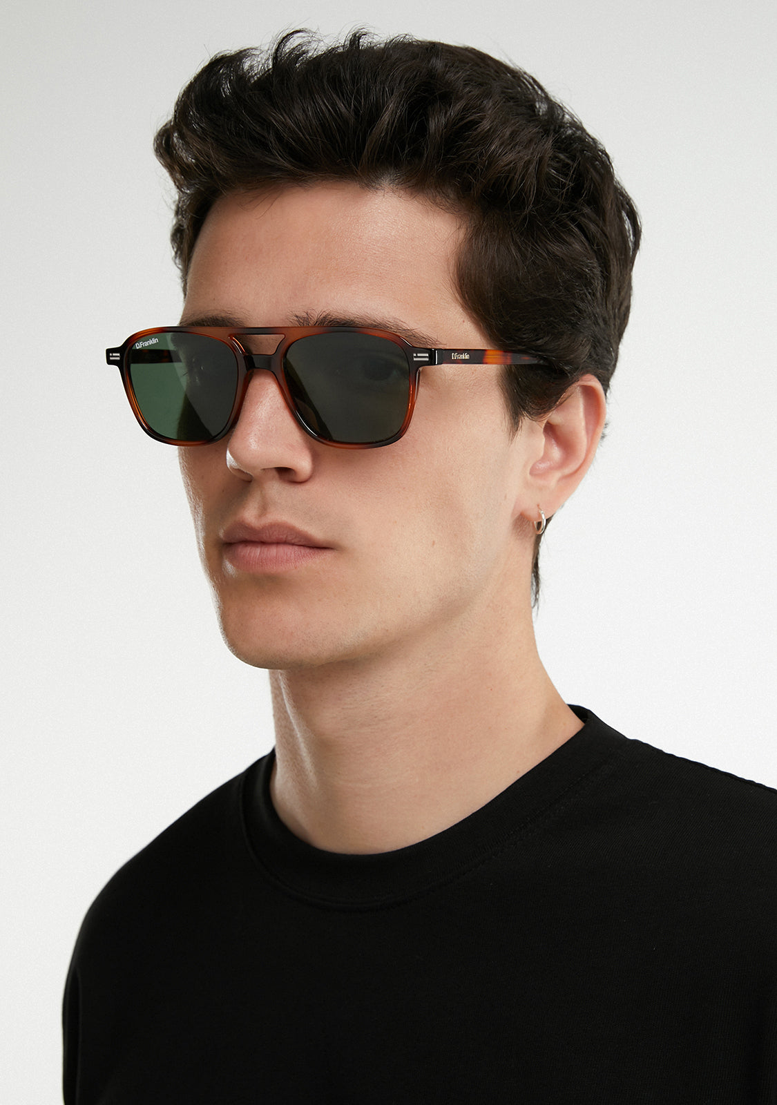 Sunglasses with an extralight frame and stylish design that evokes the most iconic models of the 80s. The brand new Jackson Square Shiny Demi / G15 brings a design that stands out by its double bridge, carey colours and the quality of its materials.