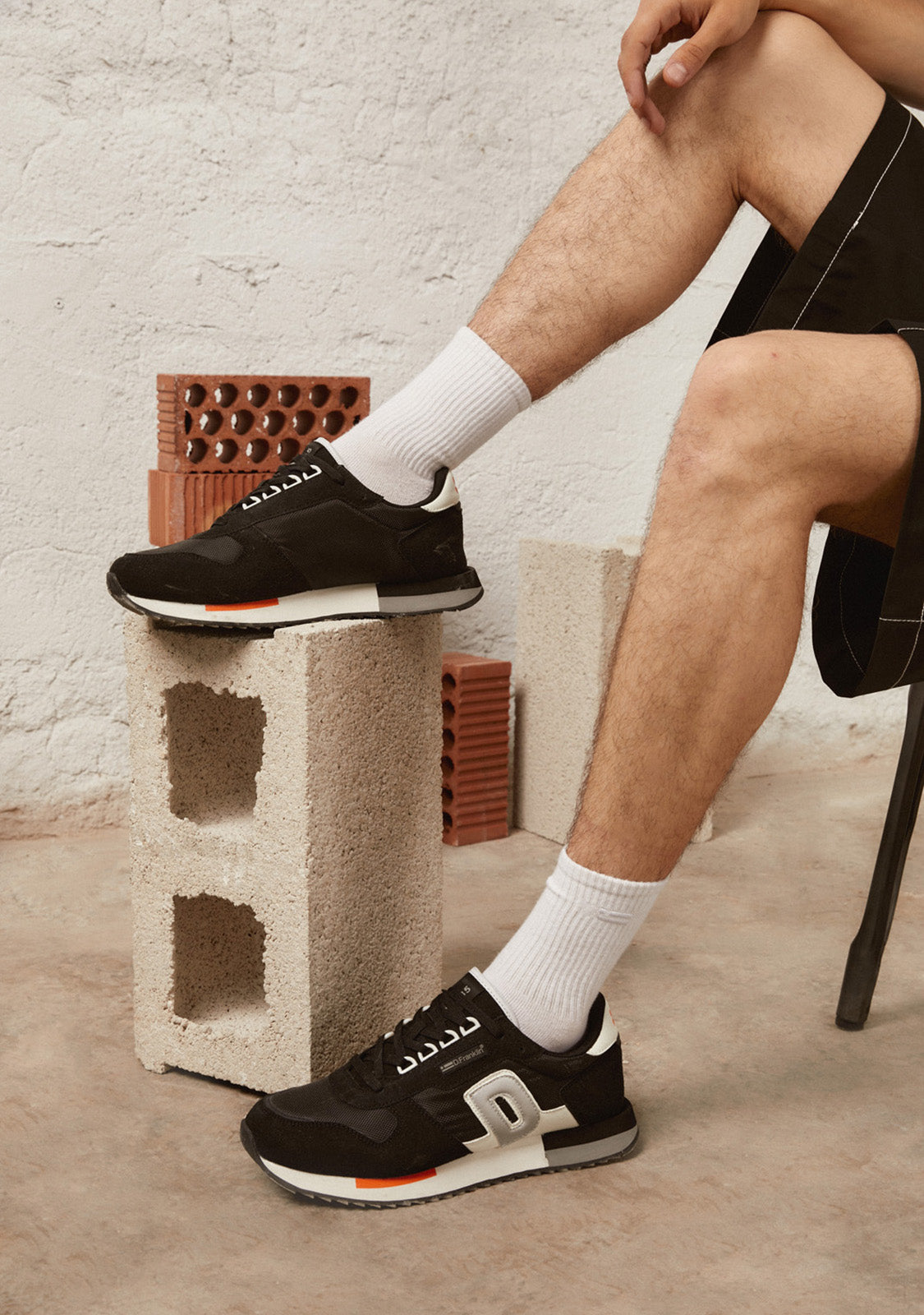 Questo modello ha un'estetica classica di colori neri con dettagli arancioni. Presenta la lettera D del nostro emblema sul lato. Ha anche lacci in cotone per una vestibilità perfetta. La suola seghettata a doppia densità offre una vestibilità comoda, leggera e una buona aderenza.