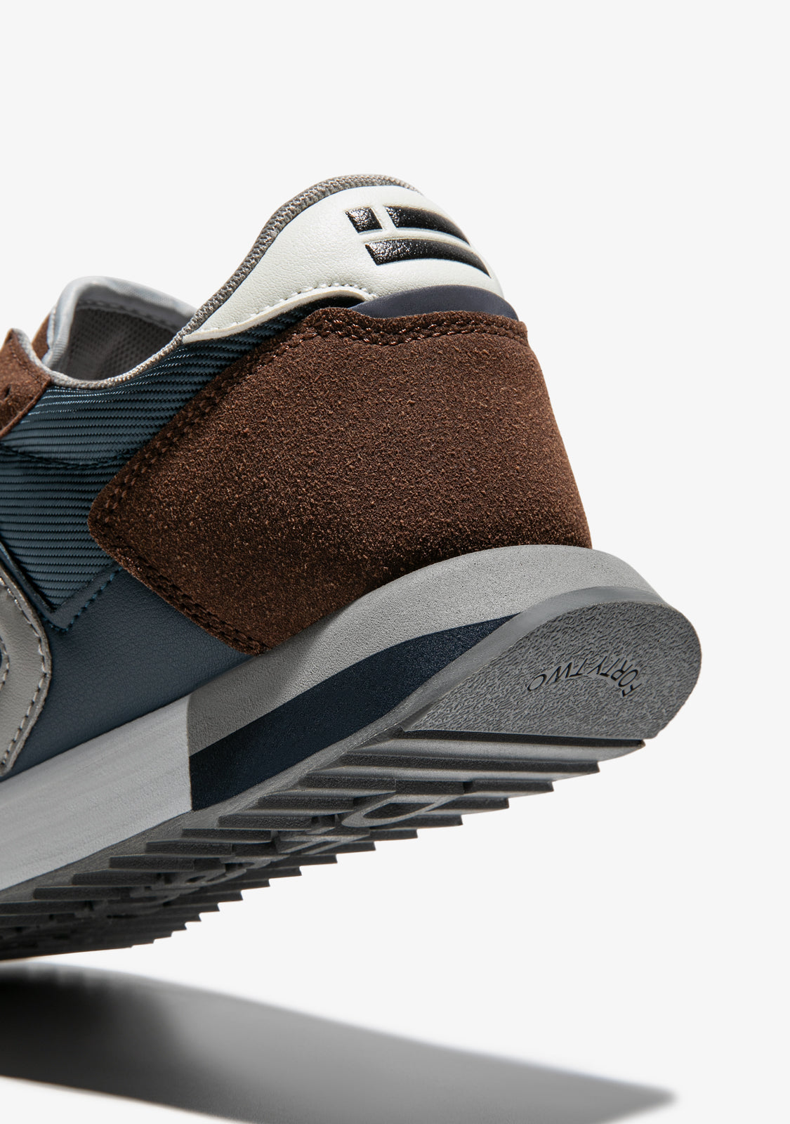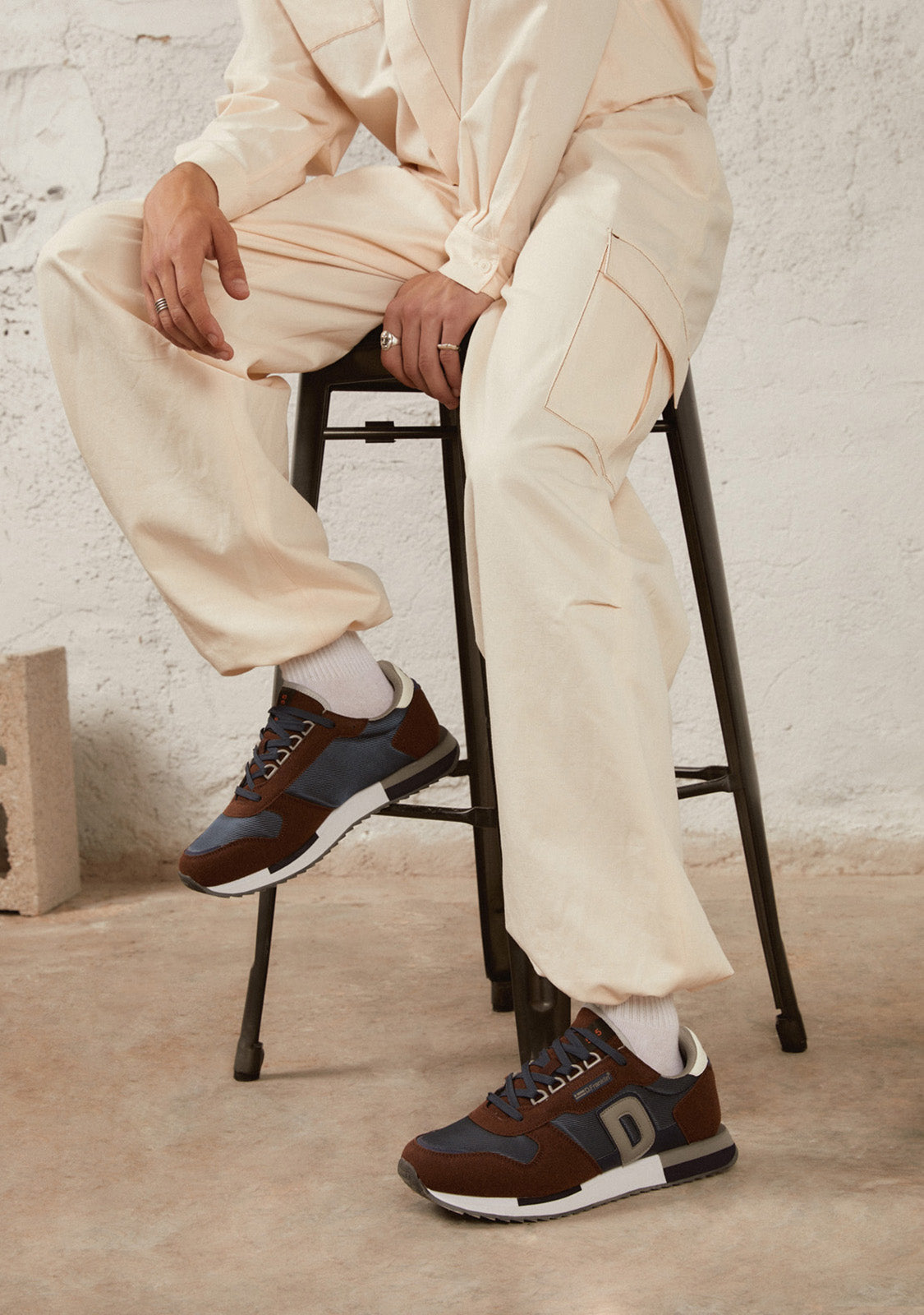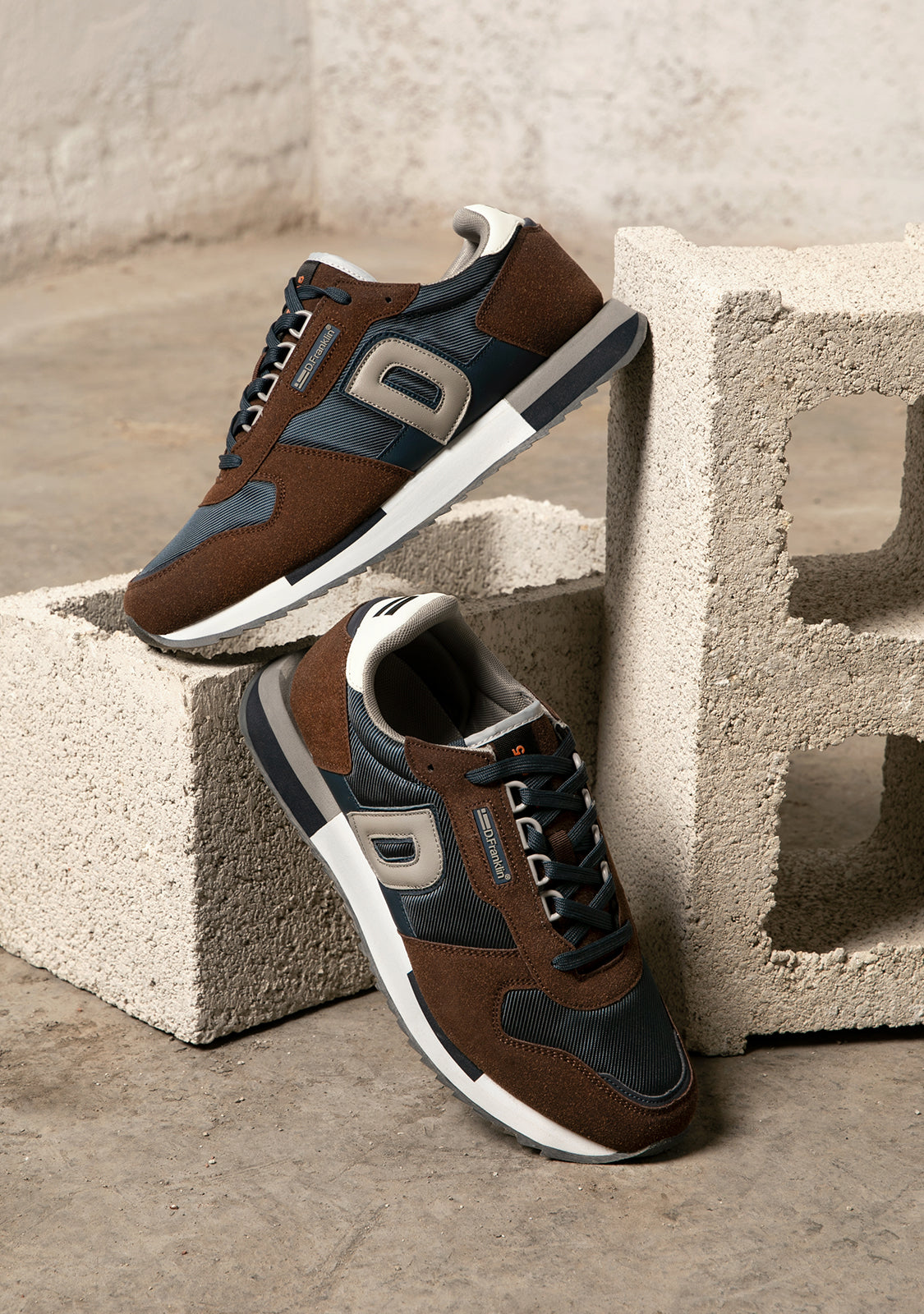 Questo modello ha un estetica classica di colori marroni con dettagli grigi. Presenta la lettera D del nostro emblema sul lato. Dispone anche di lacci in cotone per una vestibilità perfetta. La suola seghettata a doppia densità offre una vestibilità comoda e leggera e una buona aderenza.