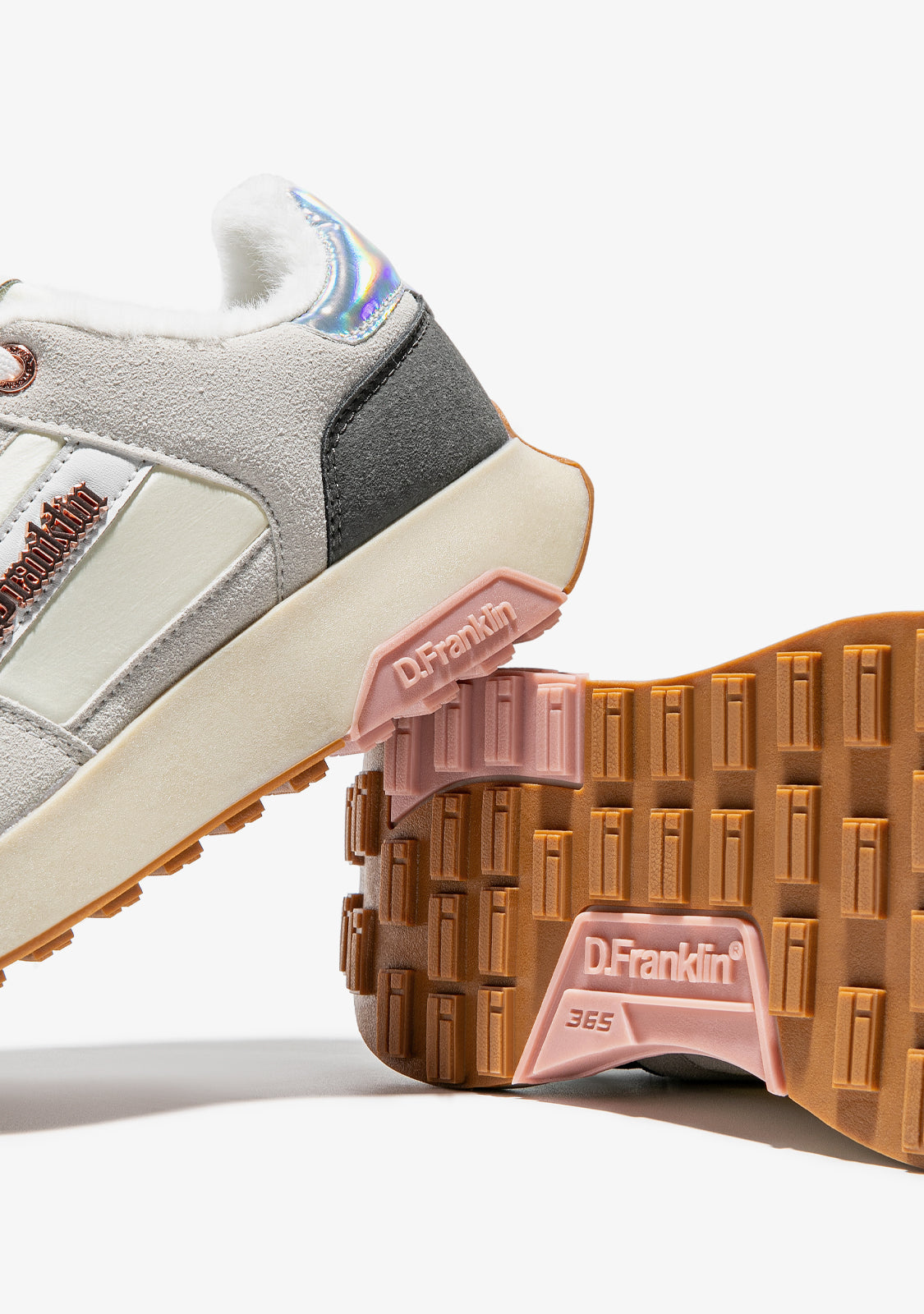 Sneakers D.Franklin in toni neutri, progettate per ambienti freddi senza sacrificare l'estetica urbana. Con una silhouette aggiornata creata per coprire il terreno che devi ancora scoprire.