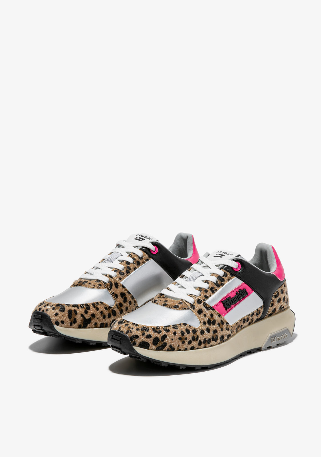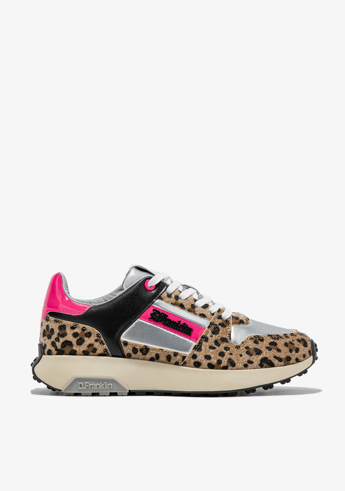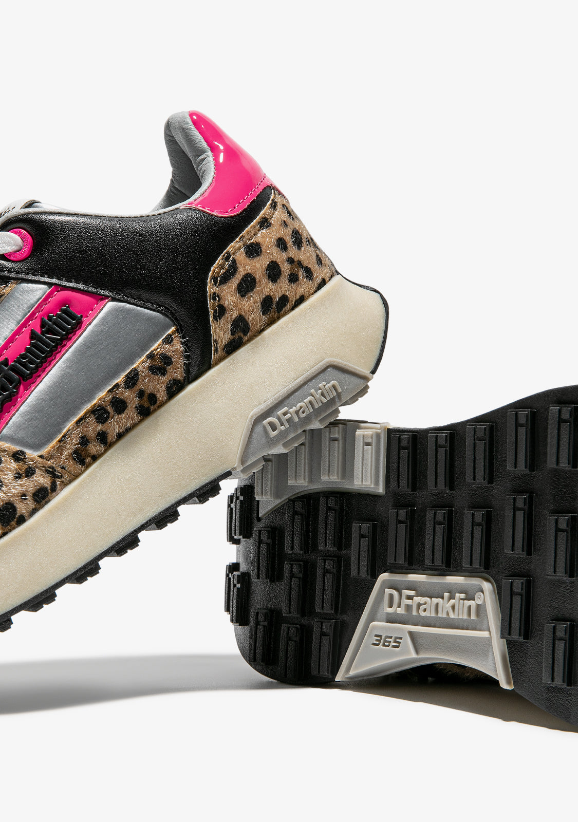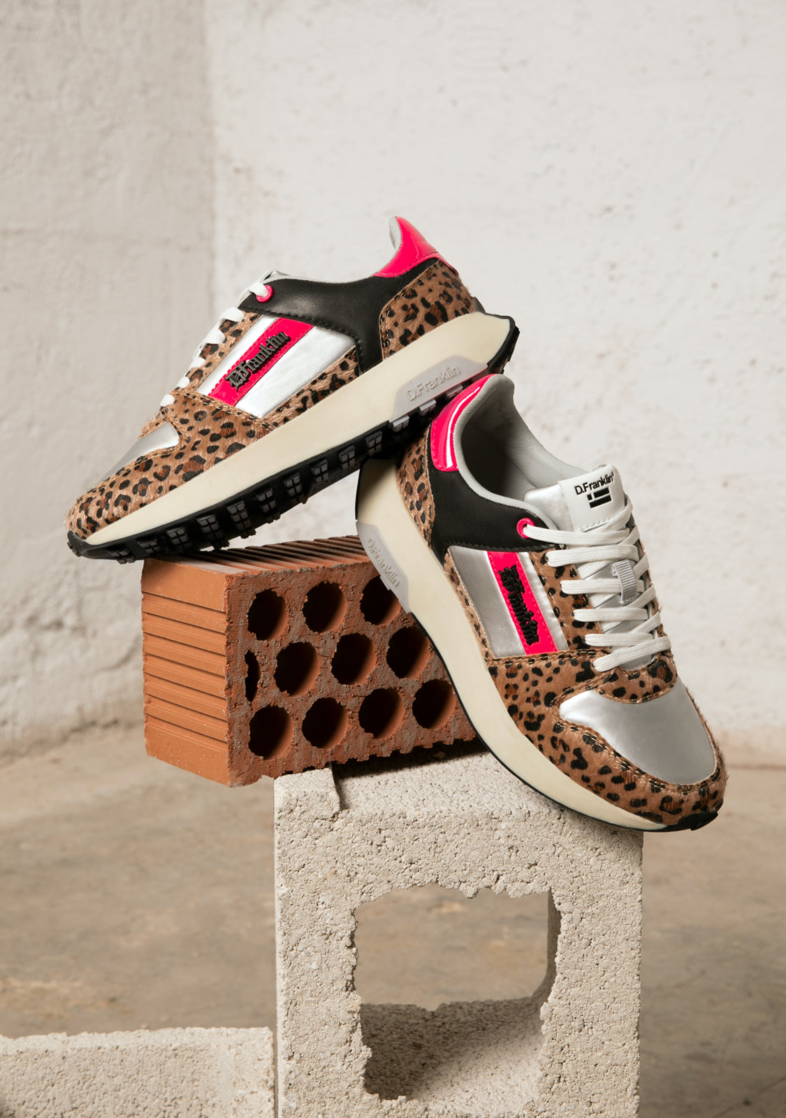 Questo modello fonde una stampa animale con toni fucsia elettrici che evidenziano la sua unicità. Ha un logo D.Franklin sul lato e lacci in cotone per una vestibilità perfetta. Inoltre, ha una suola a due densità. La prima è realizzata con materiali riciclati per un passo comodo e leggero, e la seconda è goffrata per fornire aderenza.