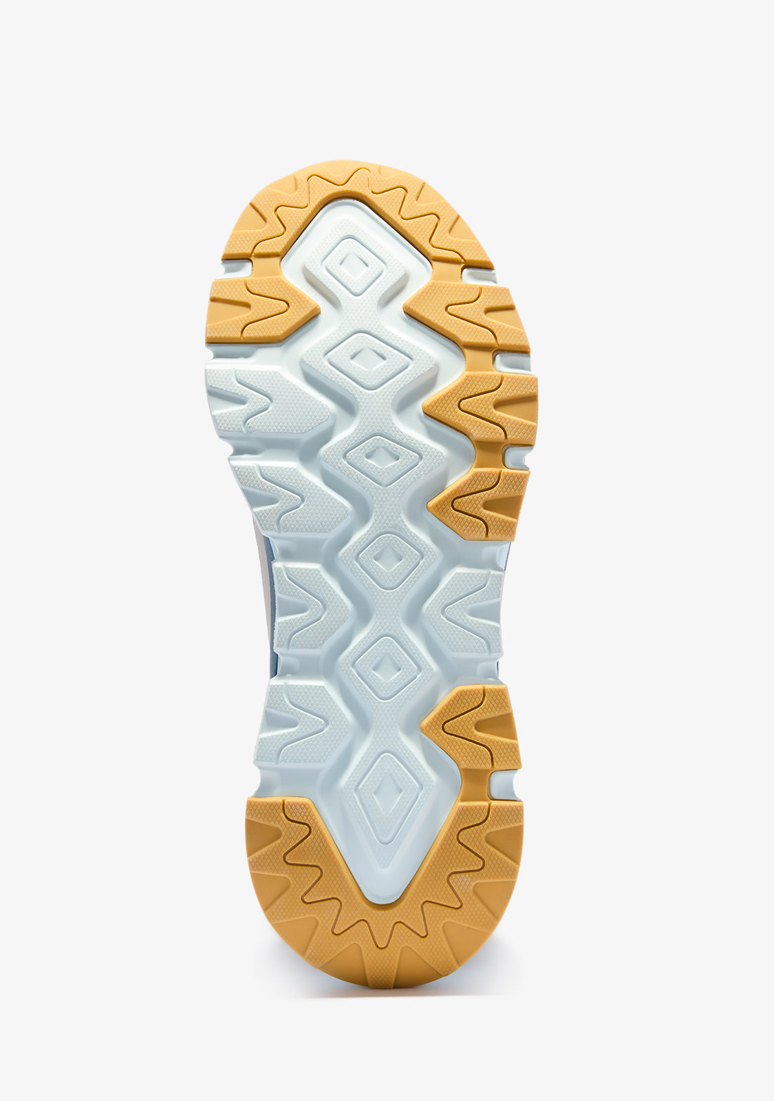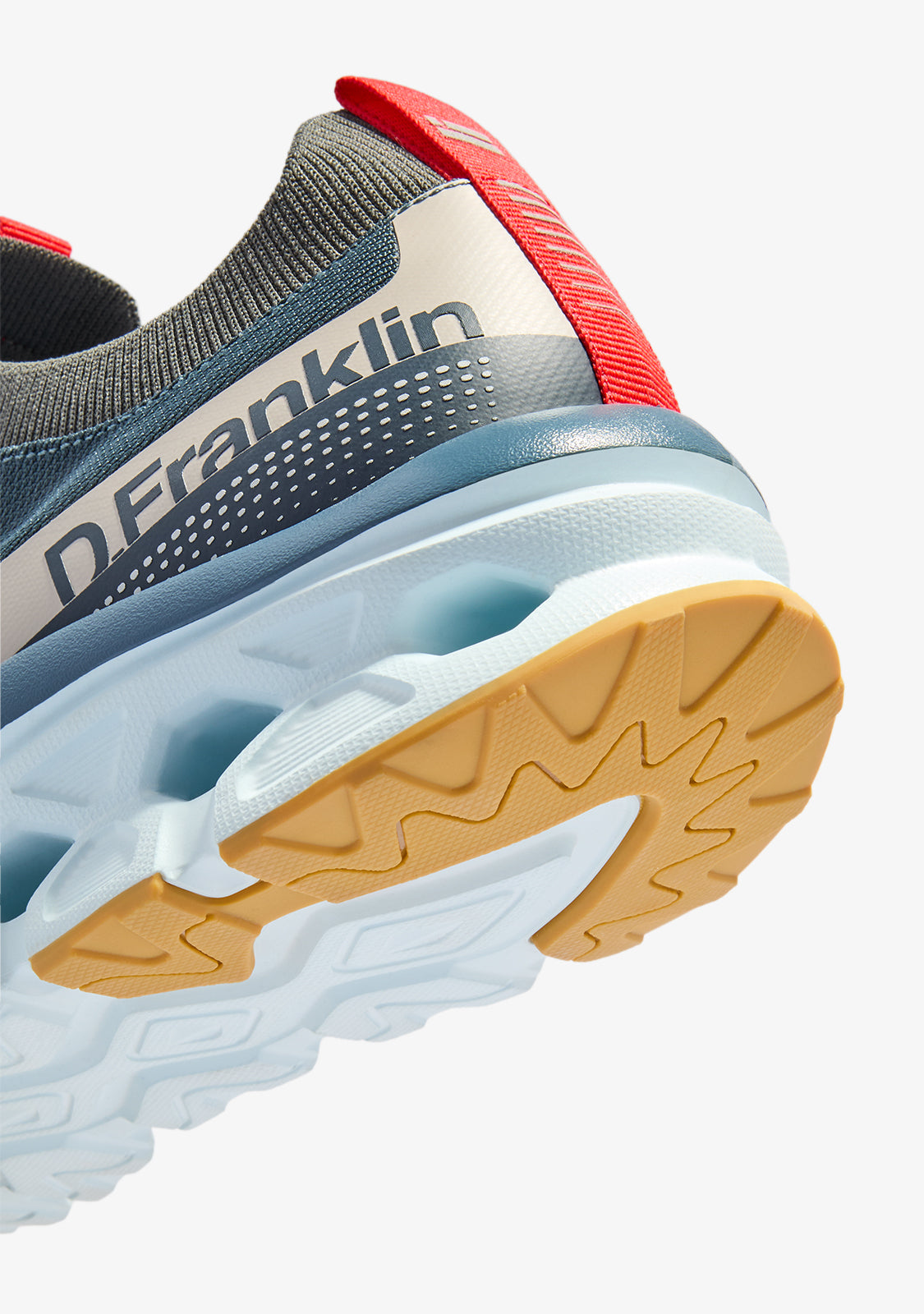 Le Aero Deep Sea di D.Franklin sono progettate per la corsa e l'allenamento quotidiano, con una vestibilità regolare e chiusura con lacci per una tenuta sicura. La suola piattaforma offre un sollevamento stabile, supportato dalla Validazione del Comfort Biomeccanico della Corsa.