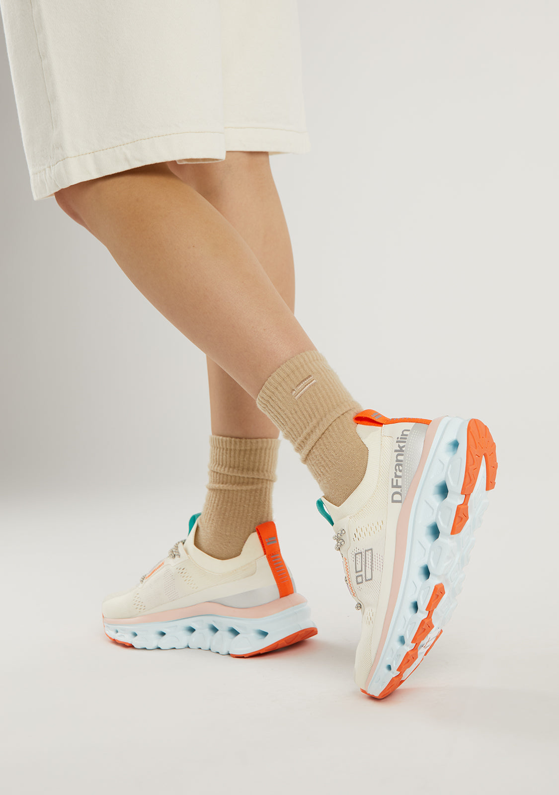 Porta il tuo stile casual al livello successivo con le Sneakers Aero Mesh Bianche / Arancioni di D.Franklin. Progettate con un tessuto sintetico traspirante, queste scarpe garantiscono leggerezza e comfort per tutto il giorno. La suola con tecnologia Aero e schiuma a doppia densità offre un'imbottitura perfetta e migliora la flessibilità e il comfort ad ogni passo.