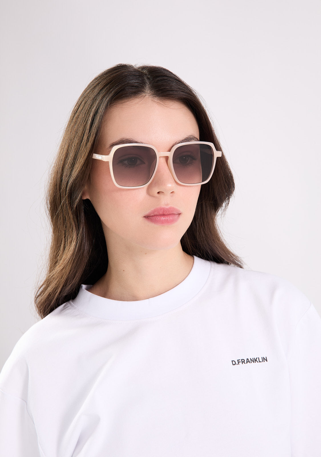 Le occhiali da sole Banger Milky Pink / Gradient Warm Brown di D.Franklin sono progettati per coloro che cercano stile e comfort nella vita quotidiana. Realizzati con una montatura in TR, ponte e aste, offrono leggerezza, durata e una vestibilità perfetta che si adatta comodamente a qualsiasi forma del viso.