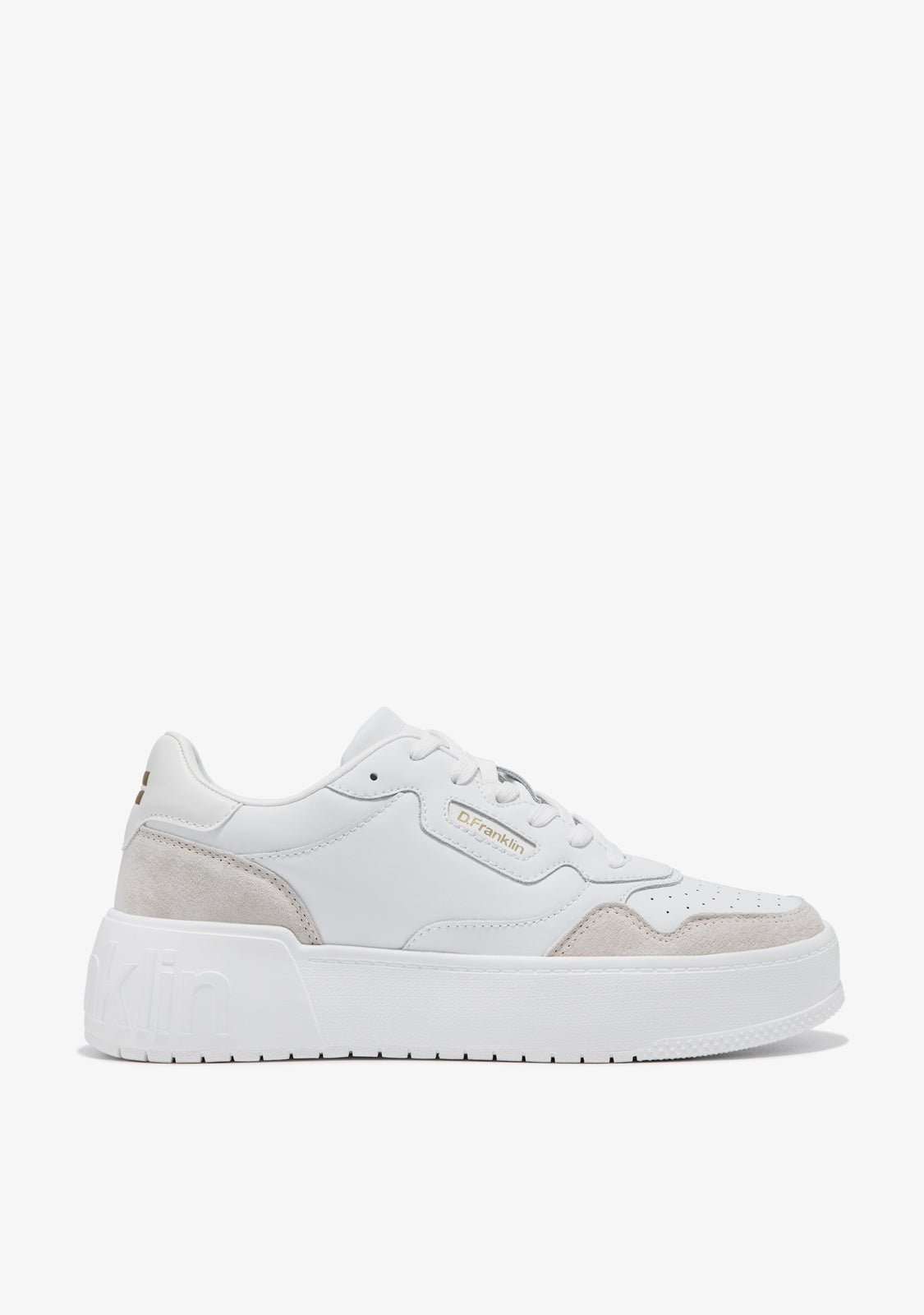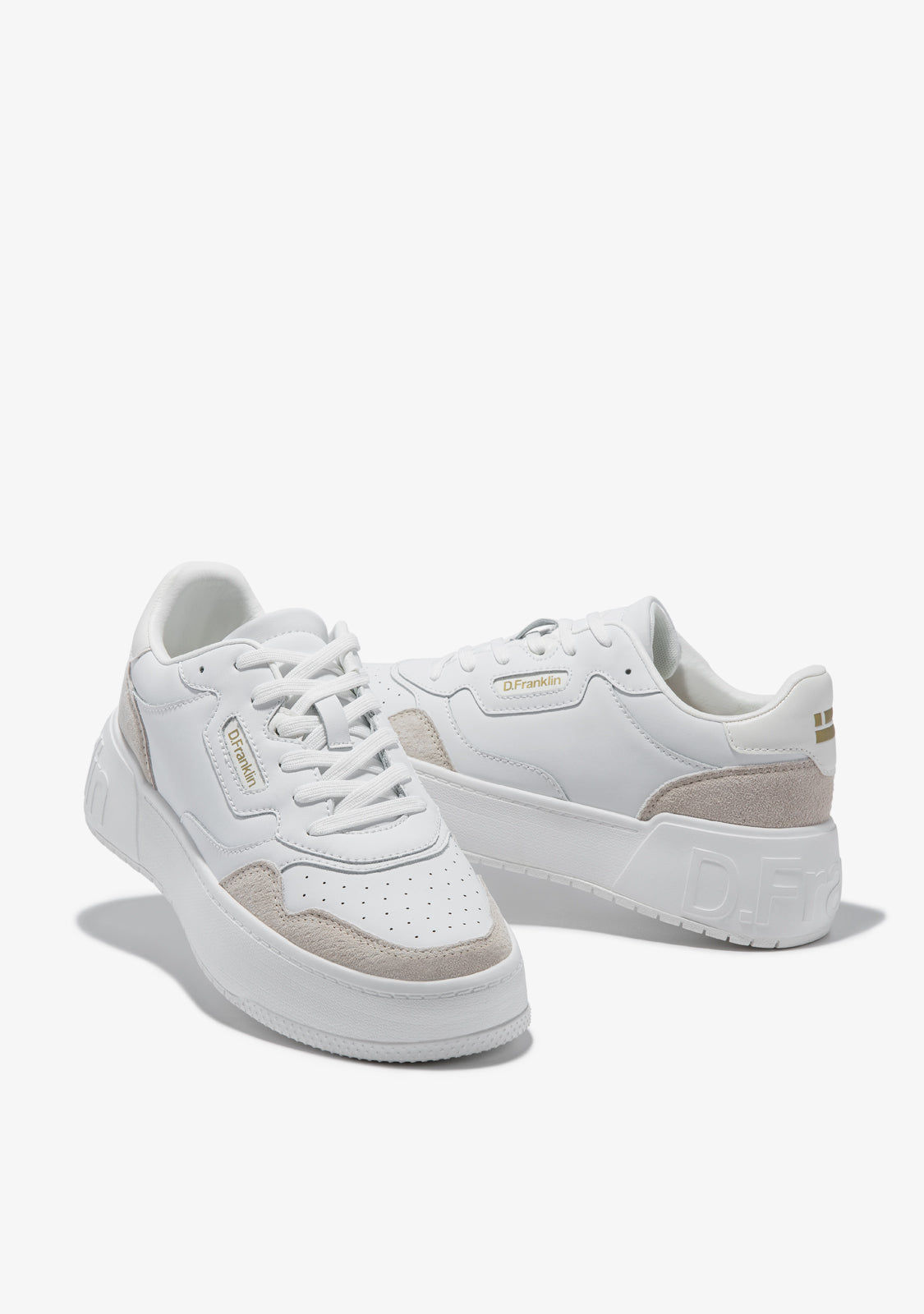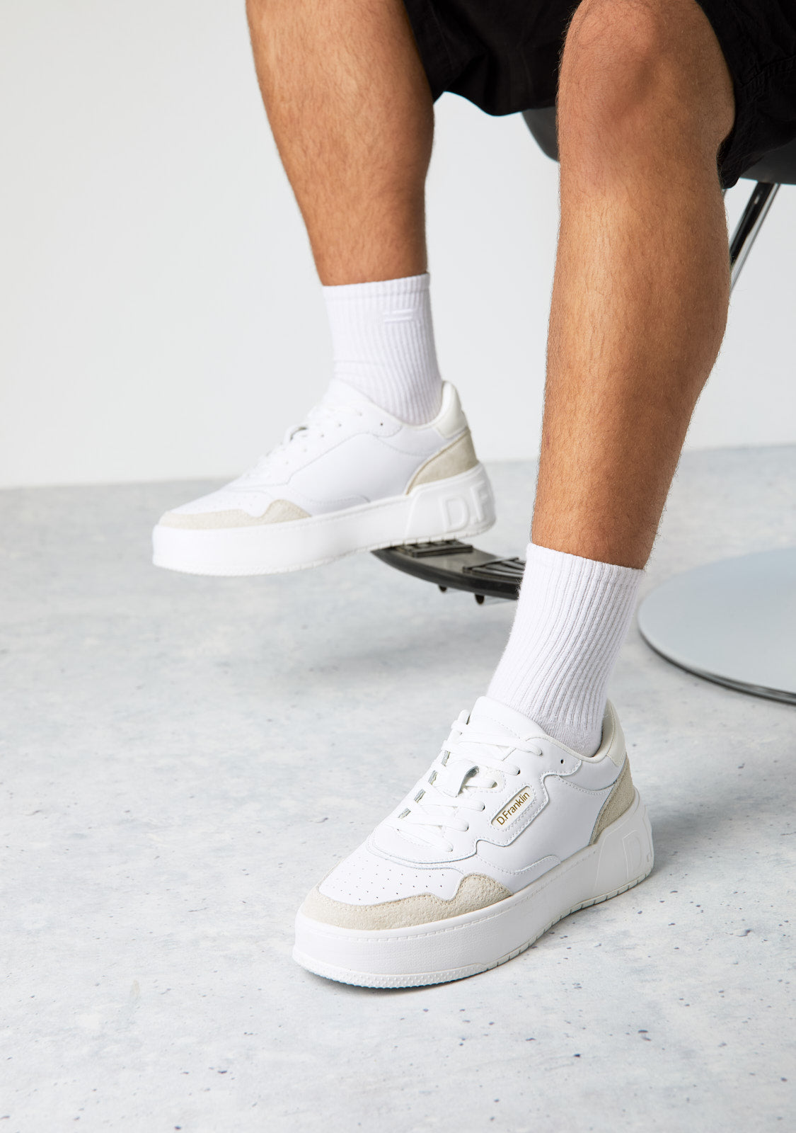 Scarpe minimaliste con ispirazione sportiva. Il design iconico della nostra iconografia trascende il campo e colpisce le strade. Collega la tua estetica D.Franklin con un emblema dal taglio retro e dettagli semplici.