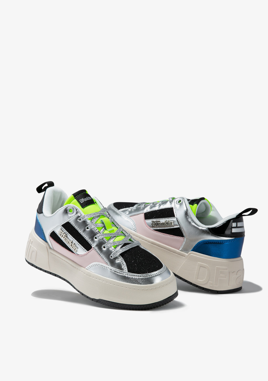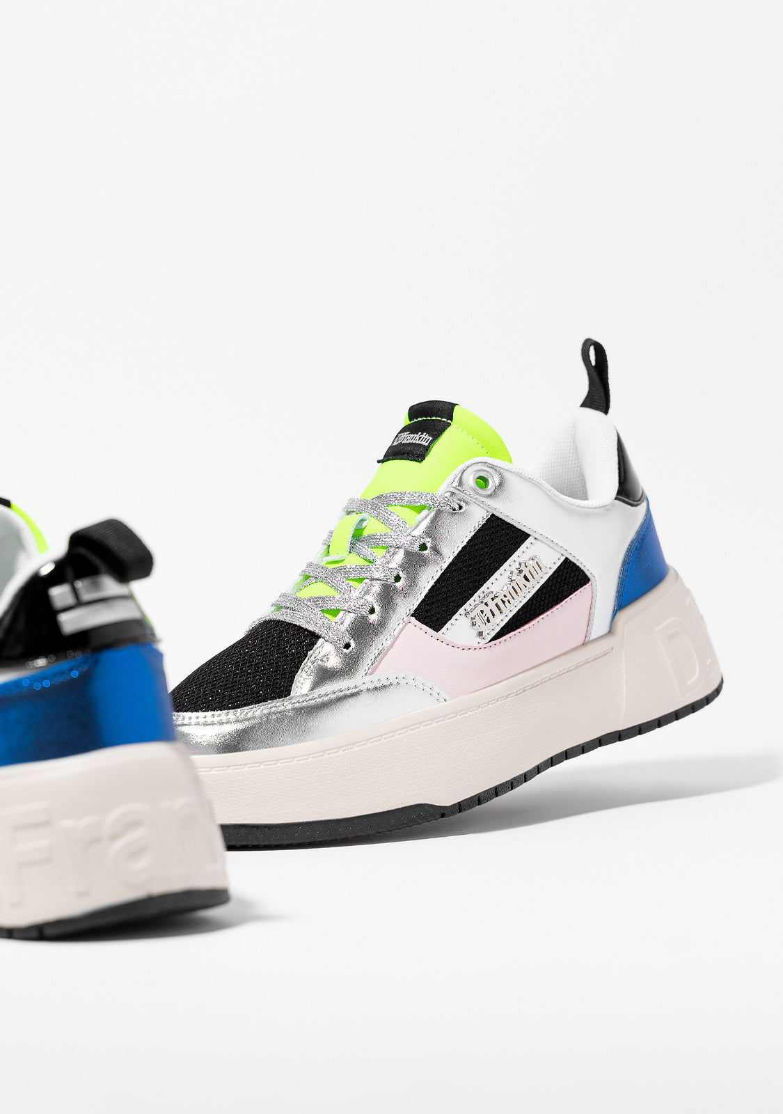 Il modello Court D.Franklin è realizzato con tonalità neon e dettagli brillanti. Hanno una suola con il logo impresso sul tallone, sulla suola e sul lato. Con 4 cm di altezza e una suola in phylon per un'ammortizzazione leggera. Il plantare anatomico è anche rimovibile.