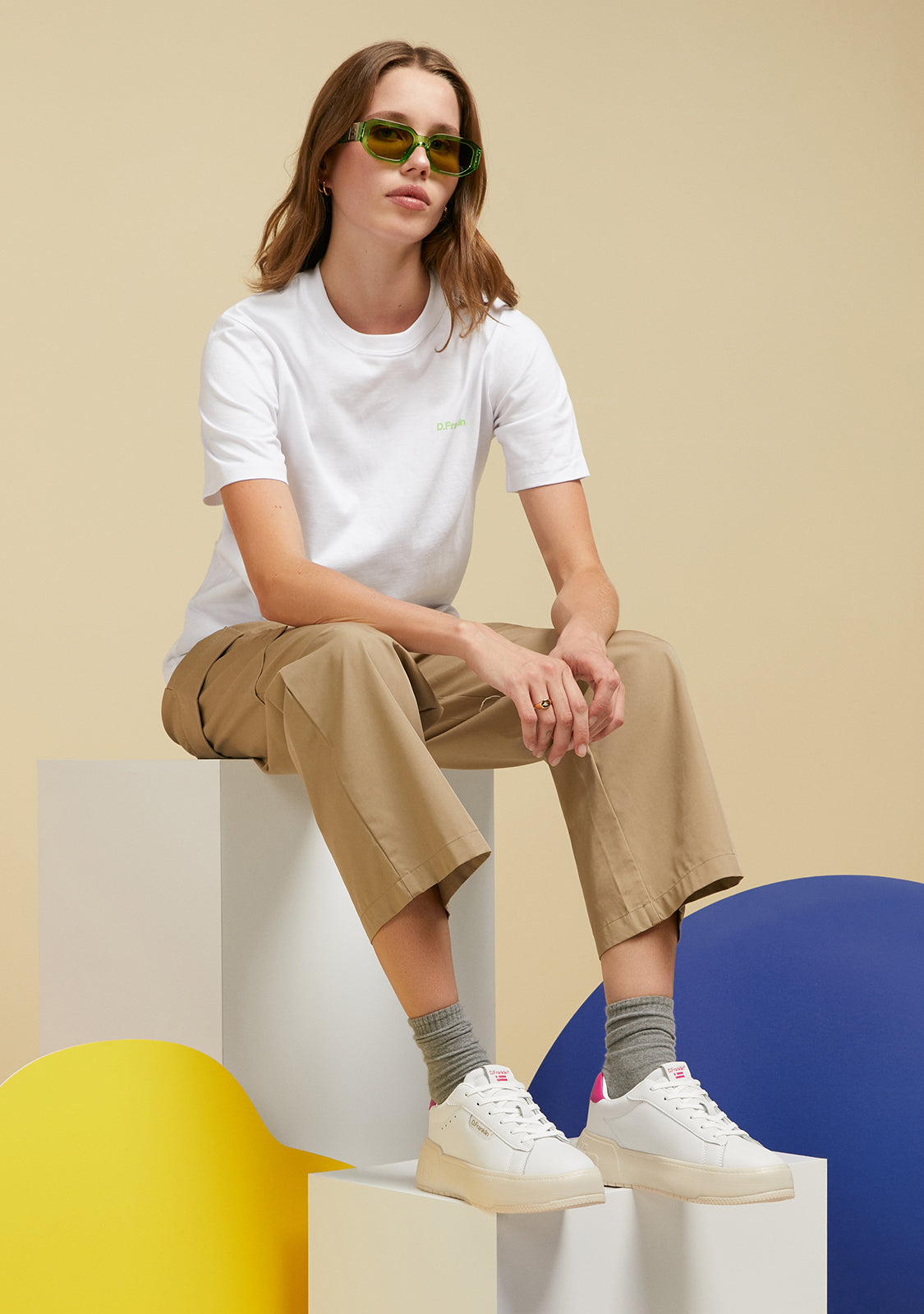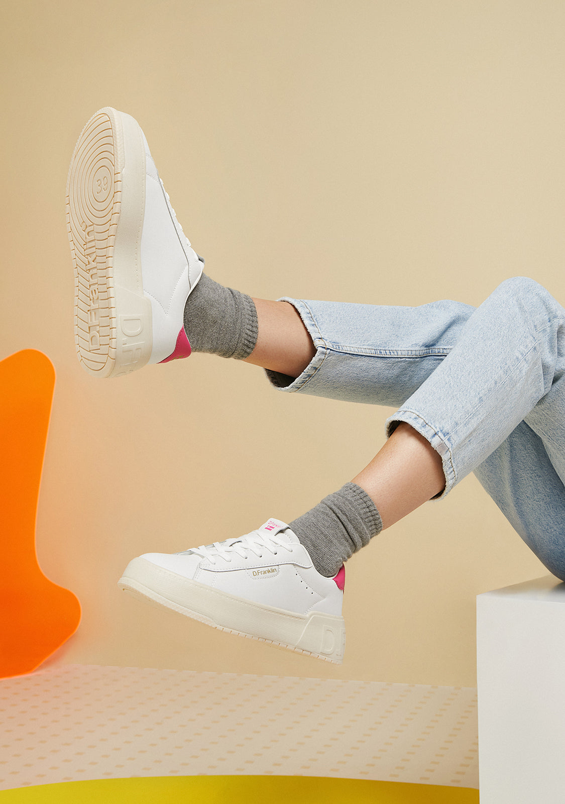 Scarpe minimaliste con un'ispirazione sportiva. Il design iconico della nostra iconografia trascende il campo e colpisce le strade. Collega la tua estetica D.Franklin con un emblema a taglio retro e dettagli semplici.