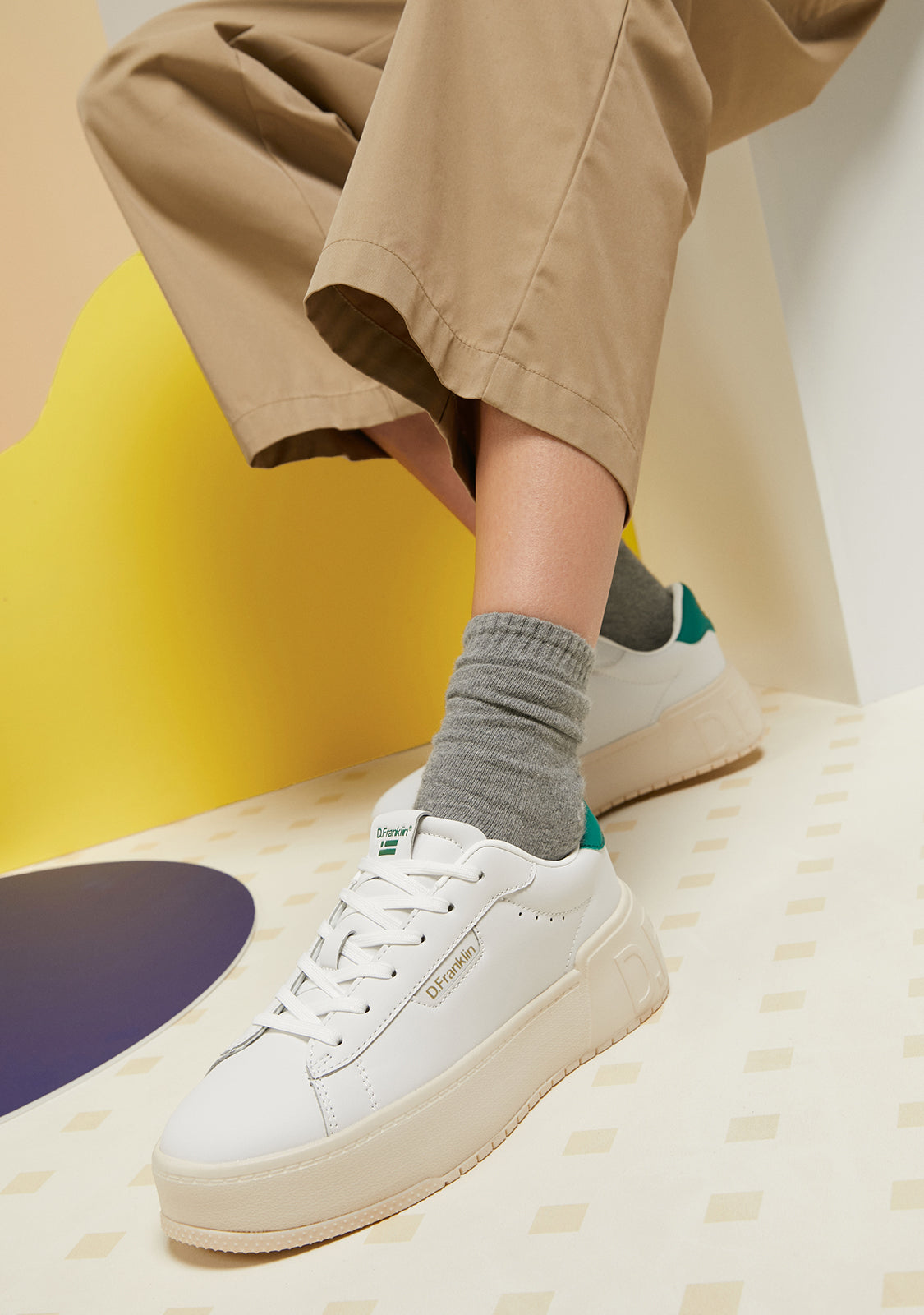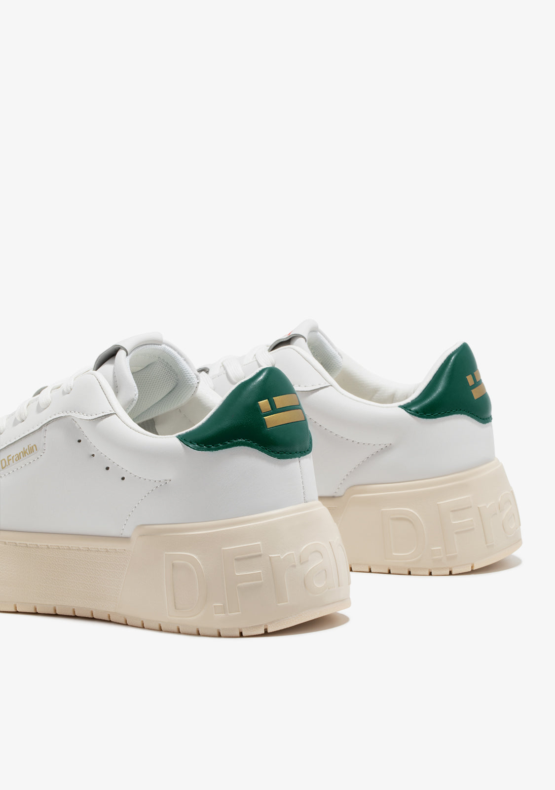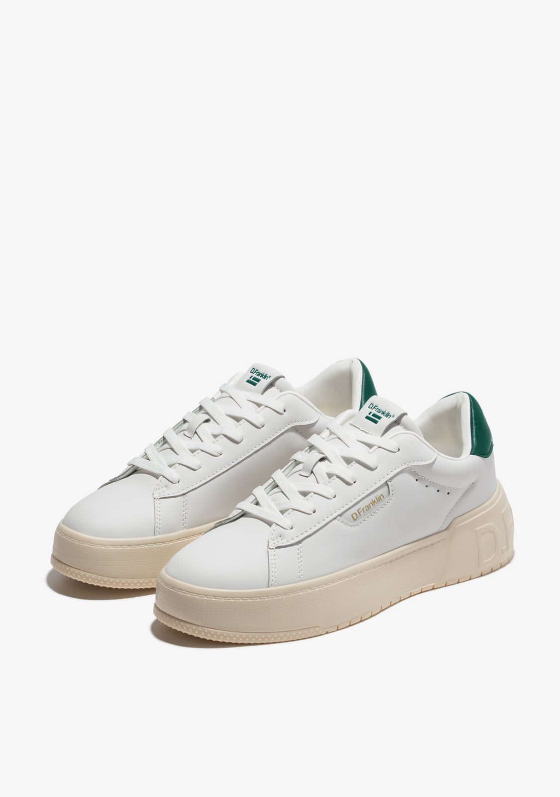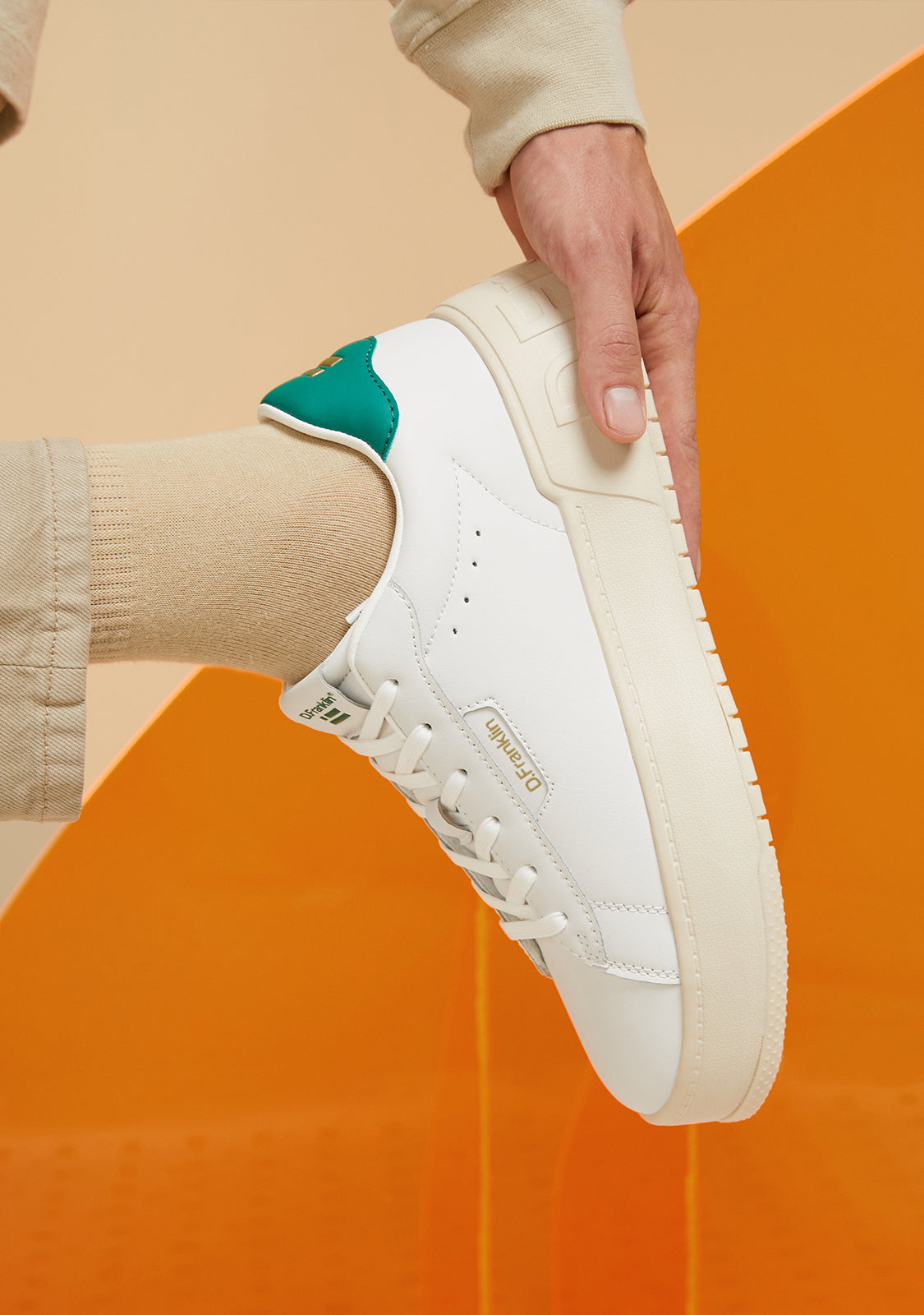 Sneaker minimaliste con ispirazione sportiva. Il design iconico della nostra iconografia trascende il campo e colpisce le strade. Collega il tuo D.Franklin estetico con un emblema a taglio retro e dettagli semplici.