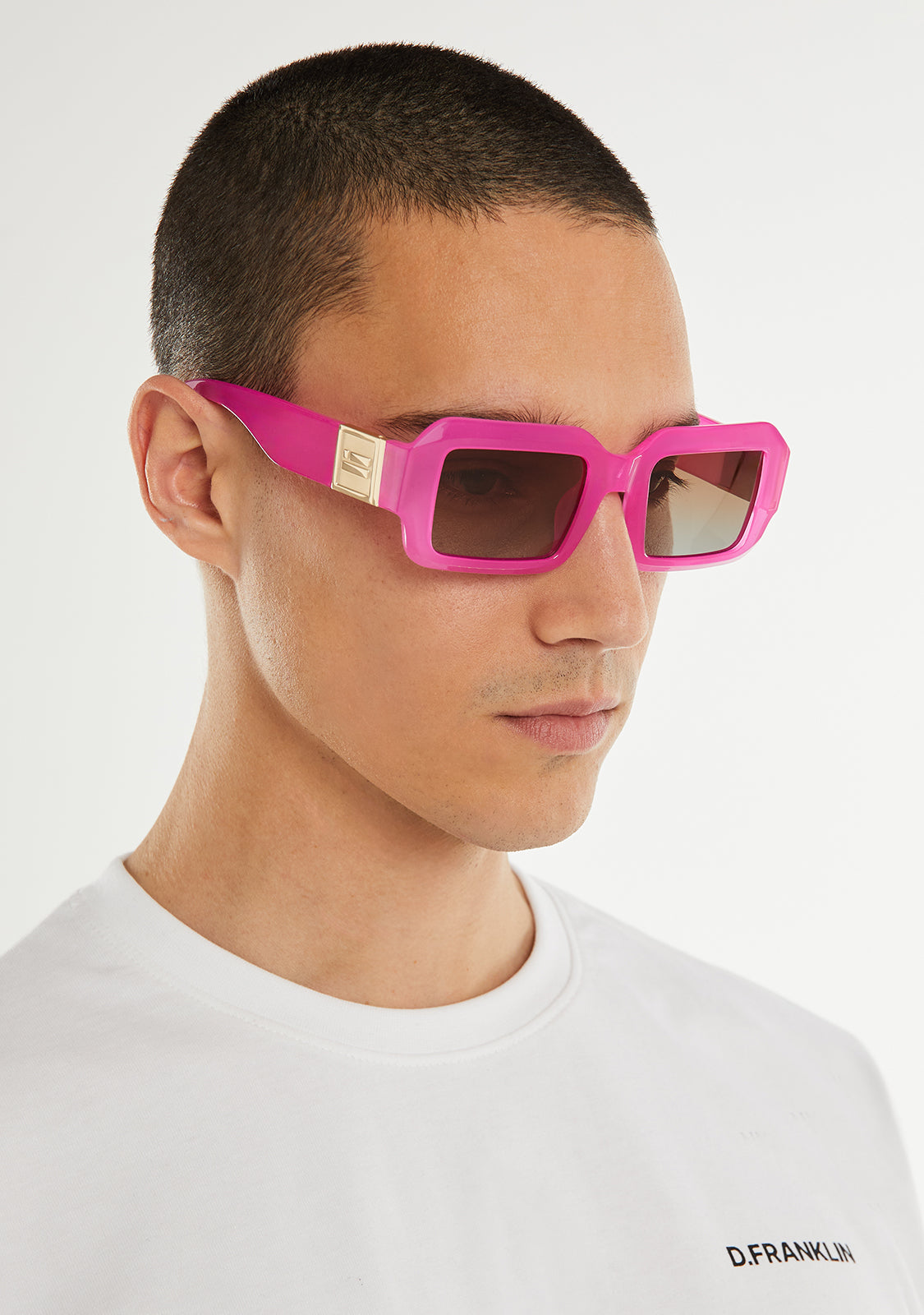 Lenti polarizzate e una montatura rosa esaltano l'estetica di questo design. Presenta la nostra caratteristica bandiera D.Franklin con una finitura dorata metallica su entrambe le tempie. Con una larghezza della lente di 51 mm e una montatura frontale di 146 mm, questi occhiali valorizzeranno la maggior parte dei volti. Le tempie laterali hanno una lunghezza di 140 mm.