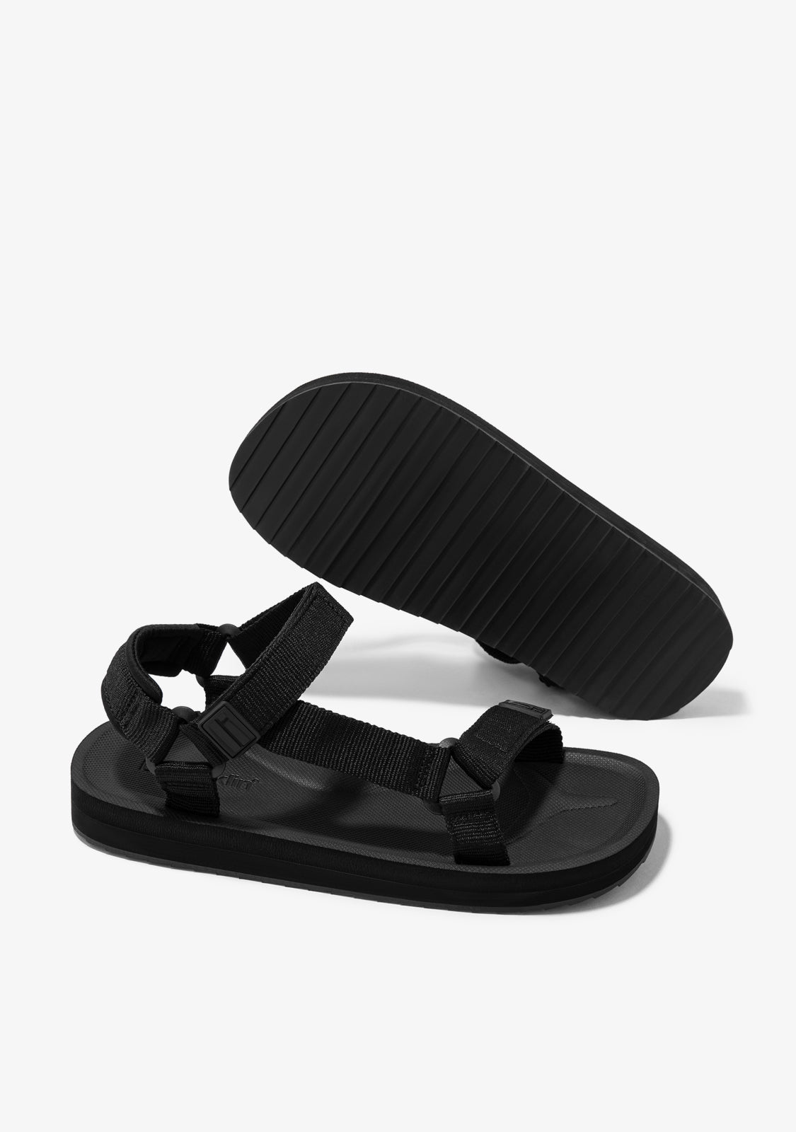 Una fuga dalla città. Una pausa dalla vita quotidiana. Design per scoprire nuovi luoghi lontani da ciò che si conosce. Sandalo dallo stile sportivo con una chiusura in velcro nera. Realizzato con suola in EVA per offrire maggiore comfort.