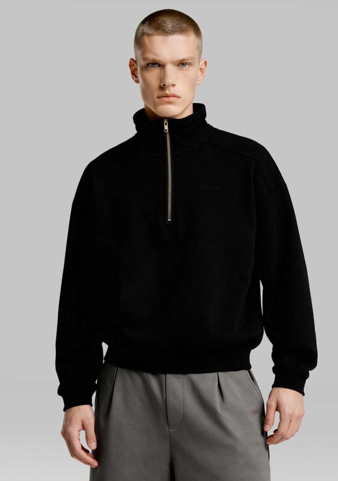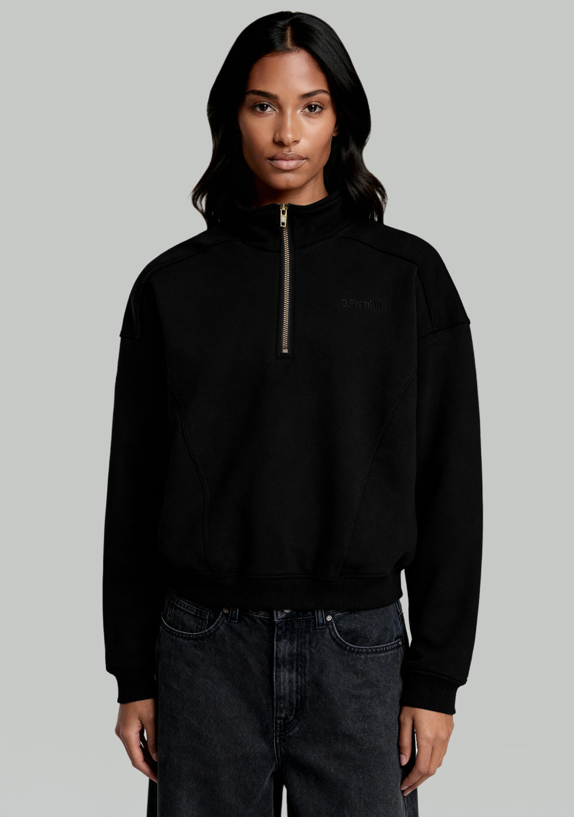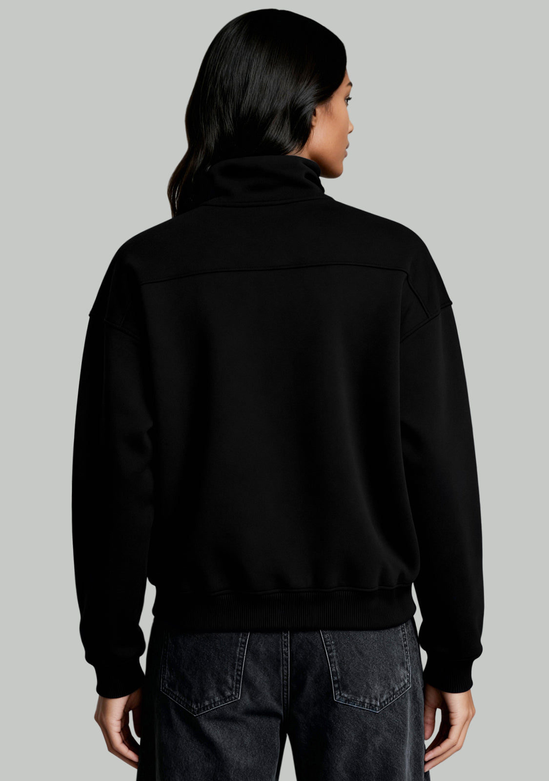 Half-Zip Sweatshirt Black è una felpa unisex che unisce comfort e struttura moderna. Il colletto con zip aggiunge flessibilità alla vestibilità, mentre le cuciture evidenti rompono la linearità per un look più dinamico.