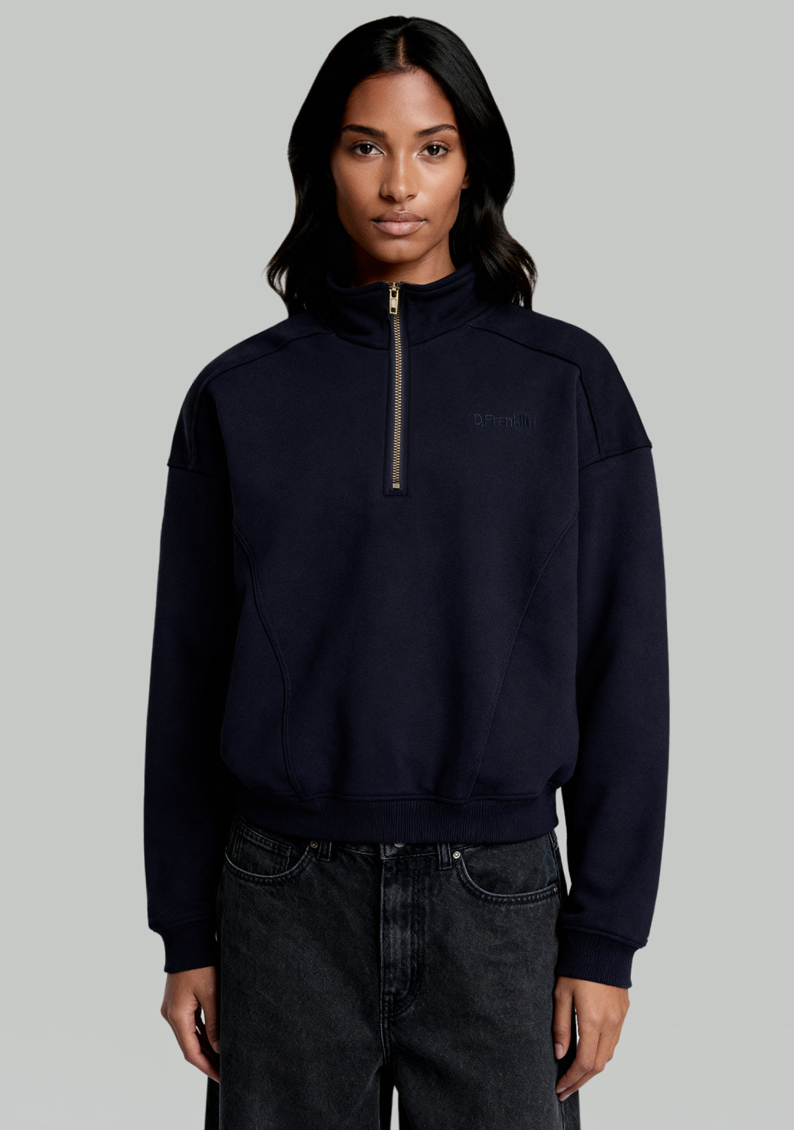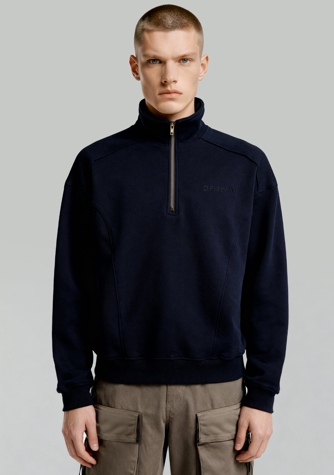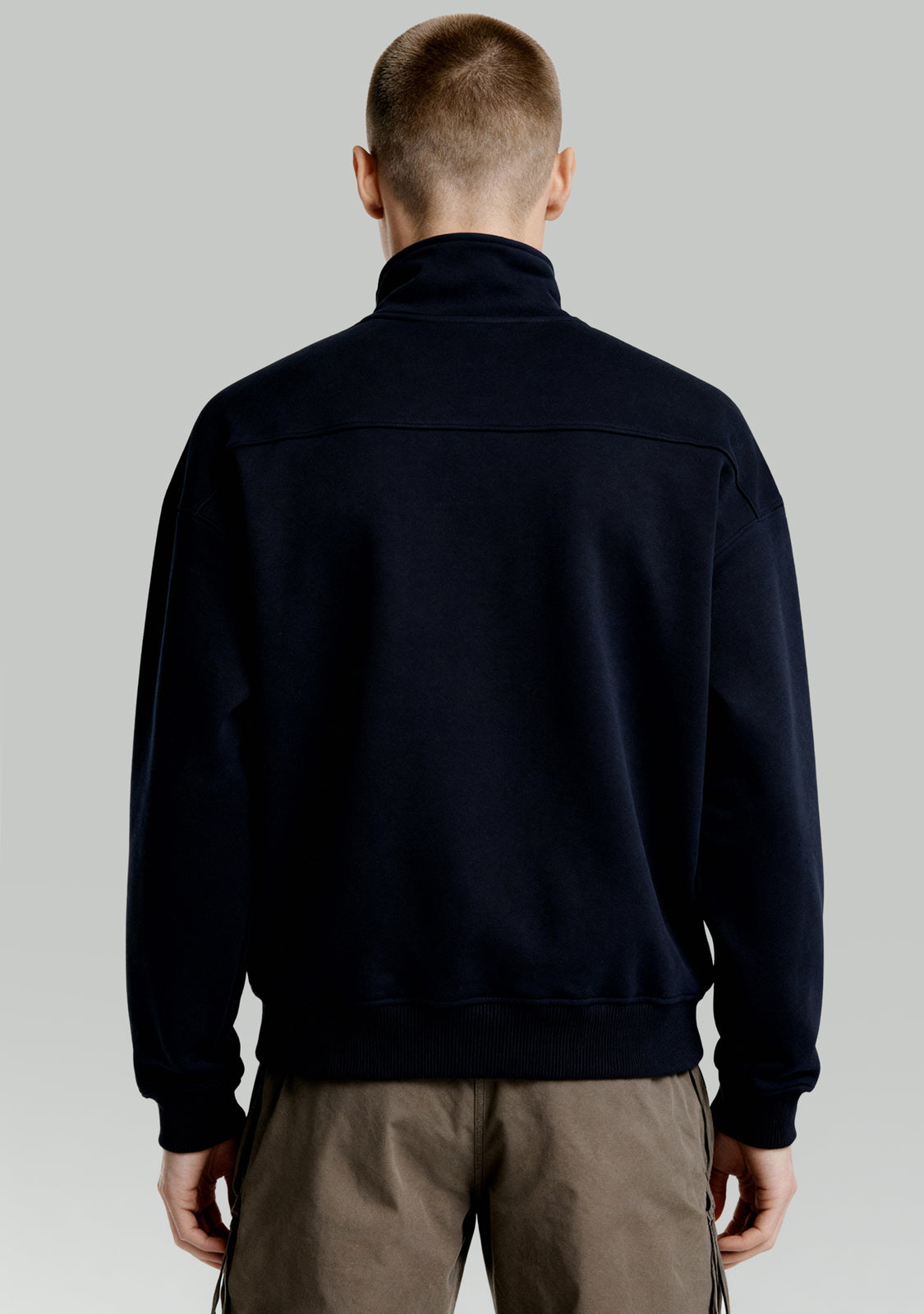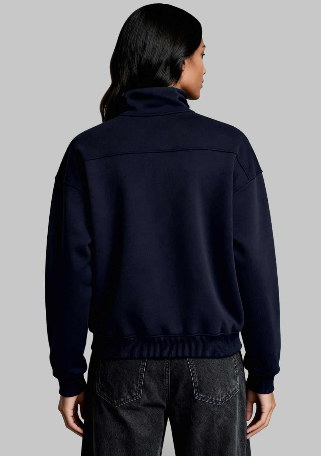 Half-Zip Sweatshirt Navy è una felpa unisex che unisce comfort e struttura moderna. Il colletto con zip aggiunge flessibilità alla vestibilità, mentre le cuciture evidenti rompono la linearità per un look più dinamico.