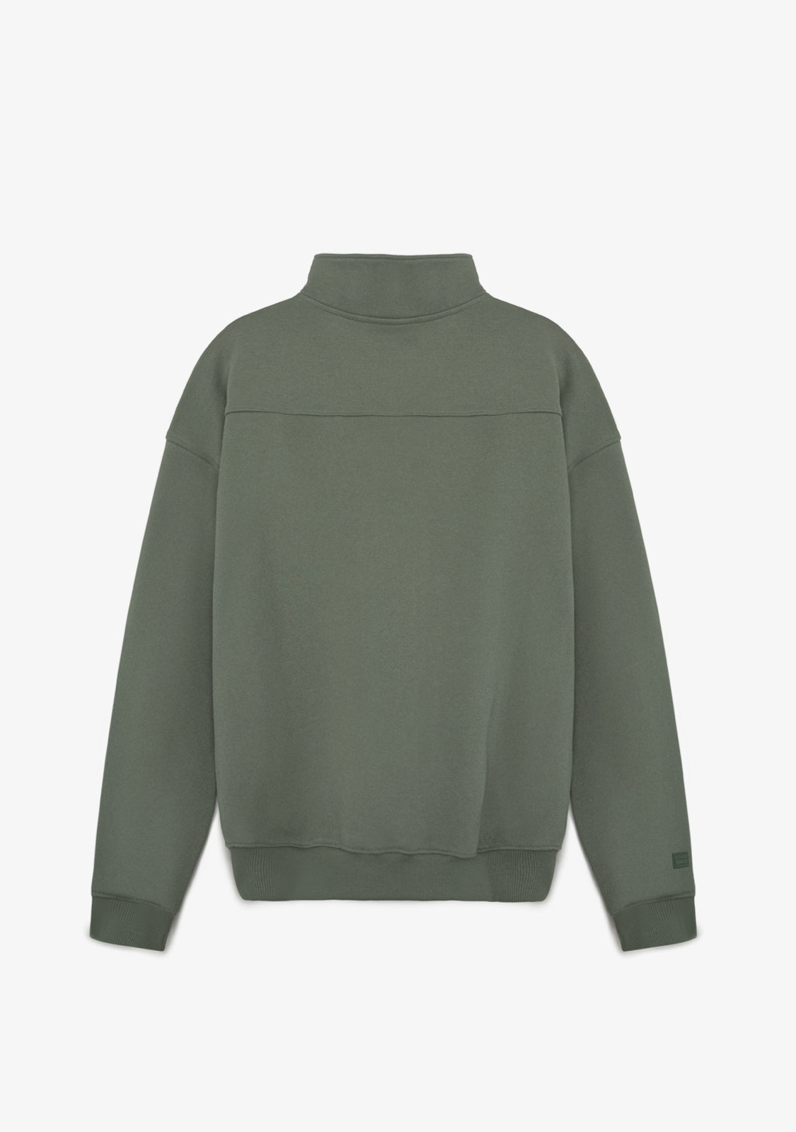 Half-Zip Sweatshirt Sage Green è una felpa unisex che unisce comfort e struttura moderna. Il colletto con zip aggiunge flessibilità alla vestibilità, mentre le cuciture evidenti rompono la linearità per un look più dinamico.