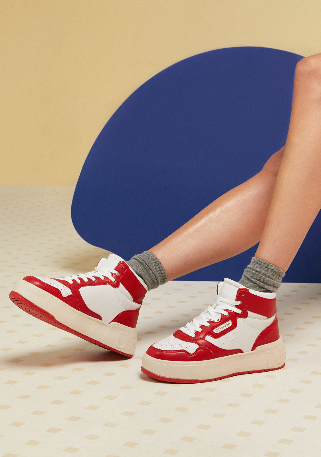 Le scarpe D.Franklin Court sono realizzate con dettagli rossi e lacci in cotone. La suola a contrasto presenta un logo in rilievo sia sul tallone che sulla suola. Hanno un'altezza di 4 cm e una suola in phylon per un'ammortizzazione leggera.