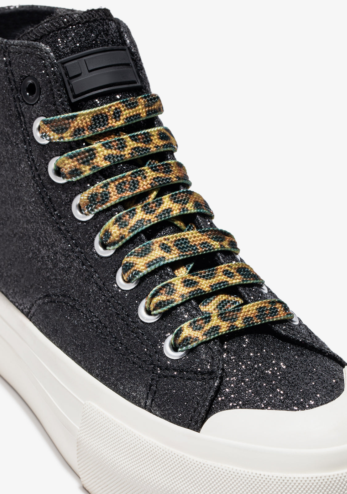Questo modello è progettato con una stampa animale leopardata in toni ocra e marrone. Presenta terminali in plastica abbinati alle estremità che permettono una vestibilità perfetta e prevengono l'usura o lo sfaldamento dei lacci.