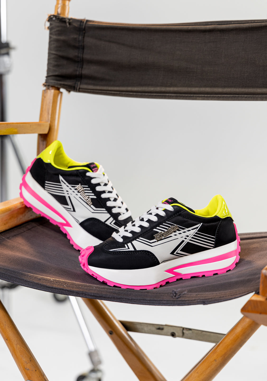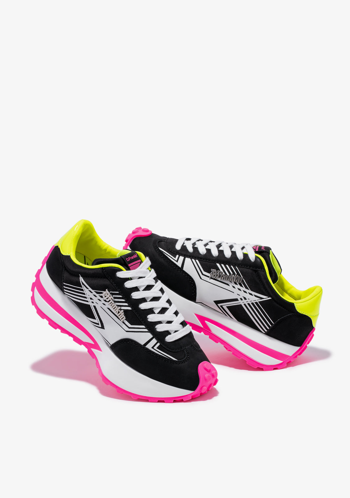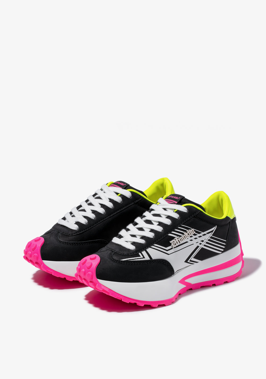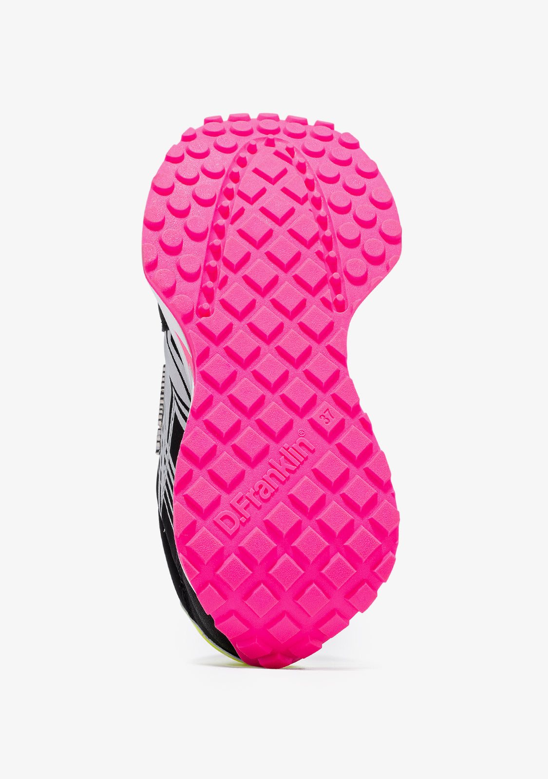 Sneaker ispirata al ritmo della città. Design alla moda realizzato con materiali cruelty-free. Stampa a stella laterale in bianco. Dettaglio in metallo placcato D.Franklin. Piattaforma bianca di 4 cm. Suola speciale TR antiscivolo in fucsia.