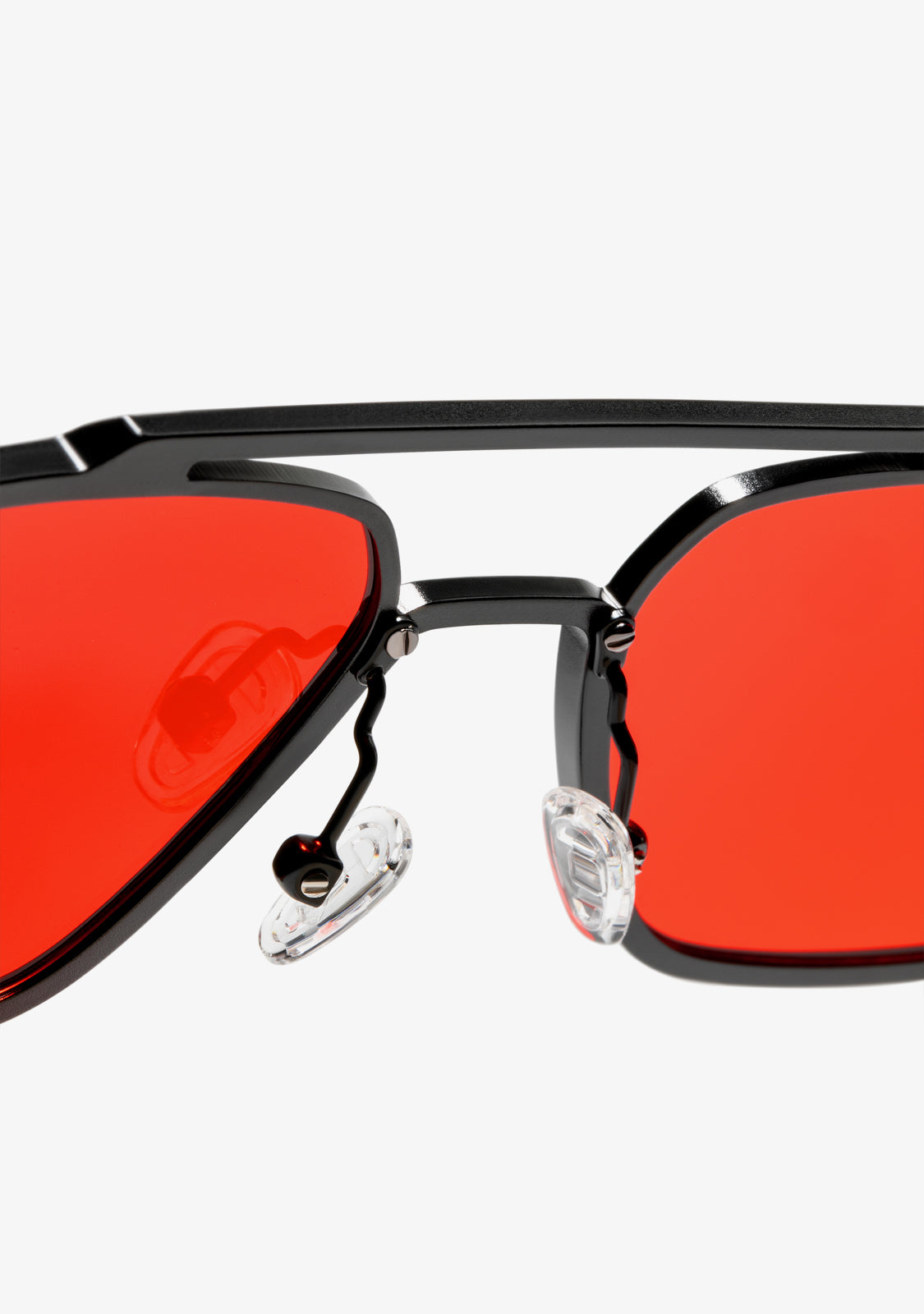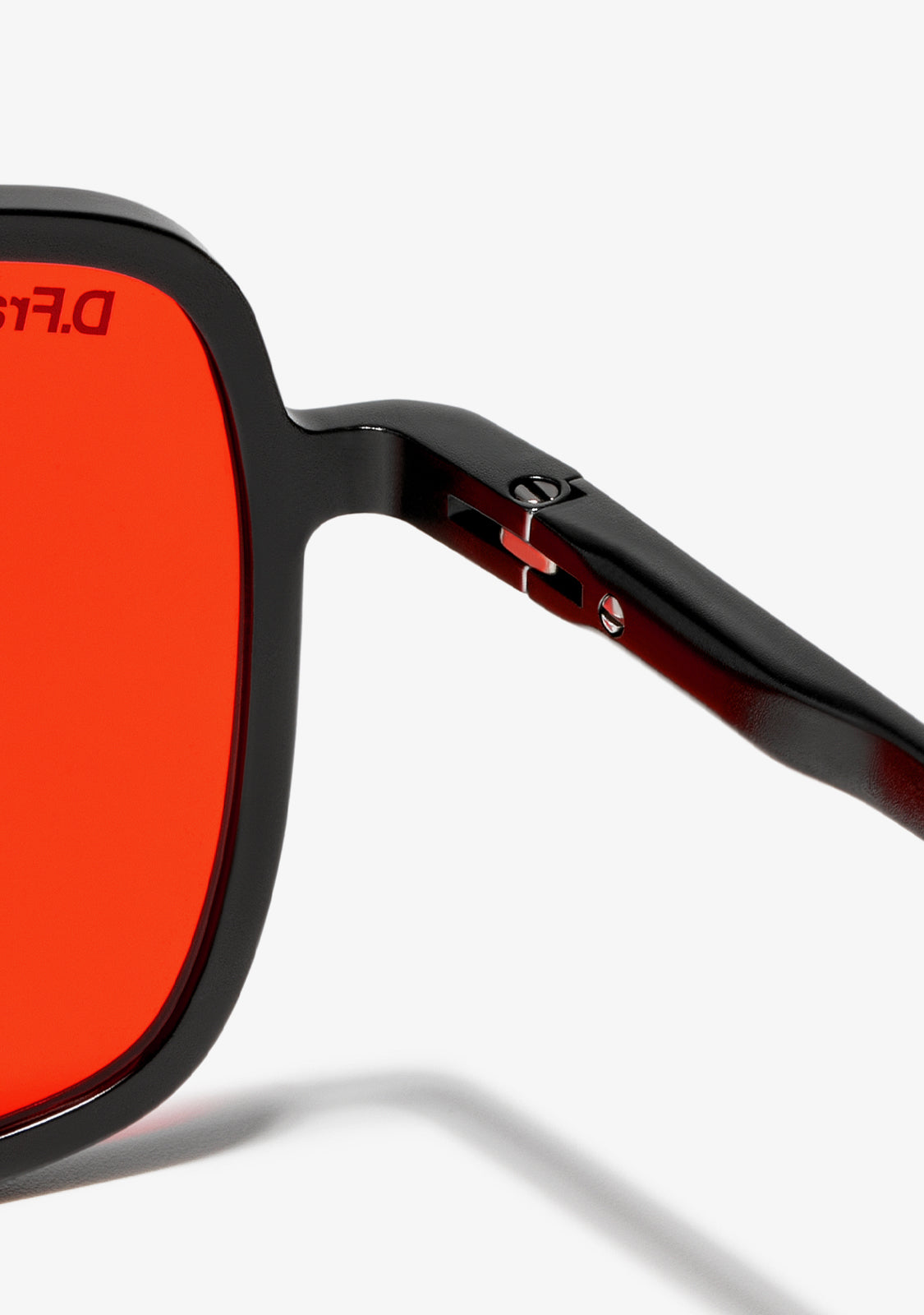 Grazie alla loro costruzione in alluminio queste occhiali sono ultra-leggeri. Lenti polarizzate rosse e una montatura nera rinforzano il design distintivo. Questi occhiali da sole presentano il nostro emblema sulla lente destra e un logo metallico sul lato delle tempie. Ha anche una montatura frontale di 140 mm e una larghezza della lente di 50 mm, che si adatta alla maggior parte dei volti. Le tempie sono lunghe 138 mm.