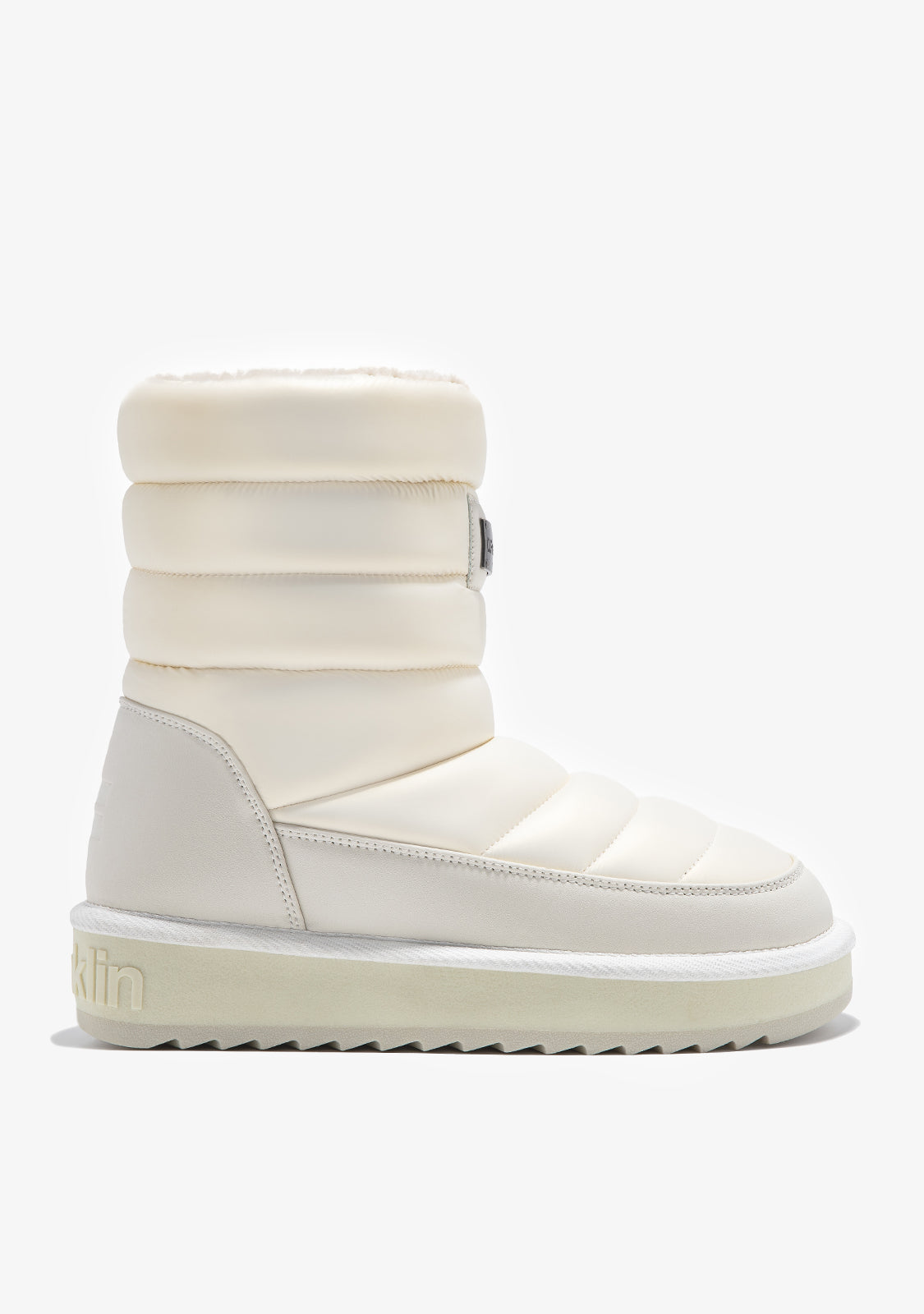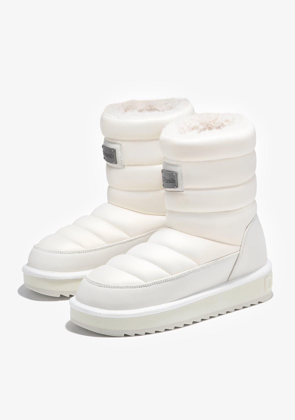 Questi stivali bianchi presentano un tessuto di alta qualità resistente all'acqua. La suola riprogettata offre un peso più leggero per un viaggio più confortevole. Presenta anche il nostro distintivo personalizzato sul tallone. Inoltre, la fodera in pelliccia sintetica aggiunge il tocco invernale definitivo.
