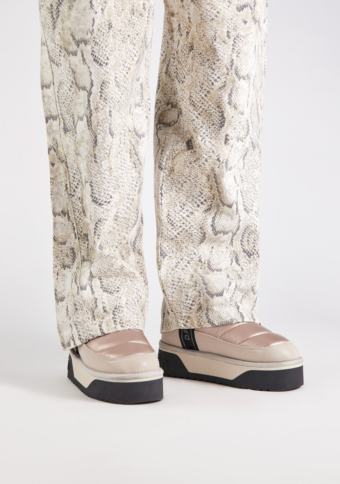 Design del gambale a taglio dritto in tonalità beige e rivestimento interno sintetico per un calore superiore.