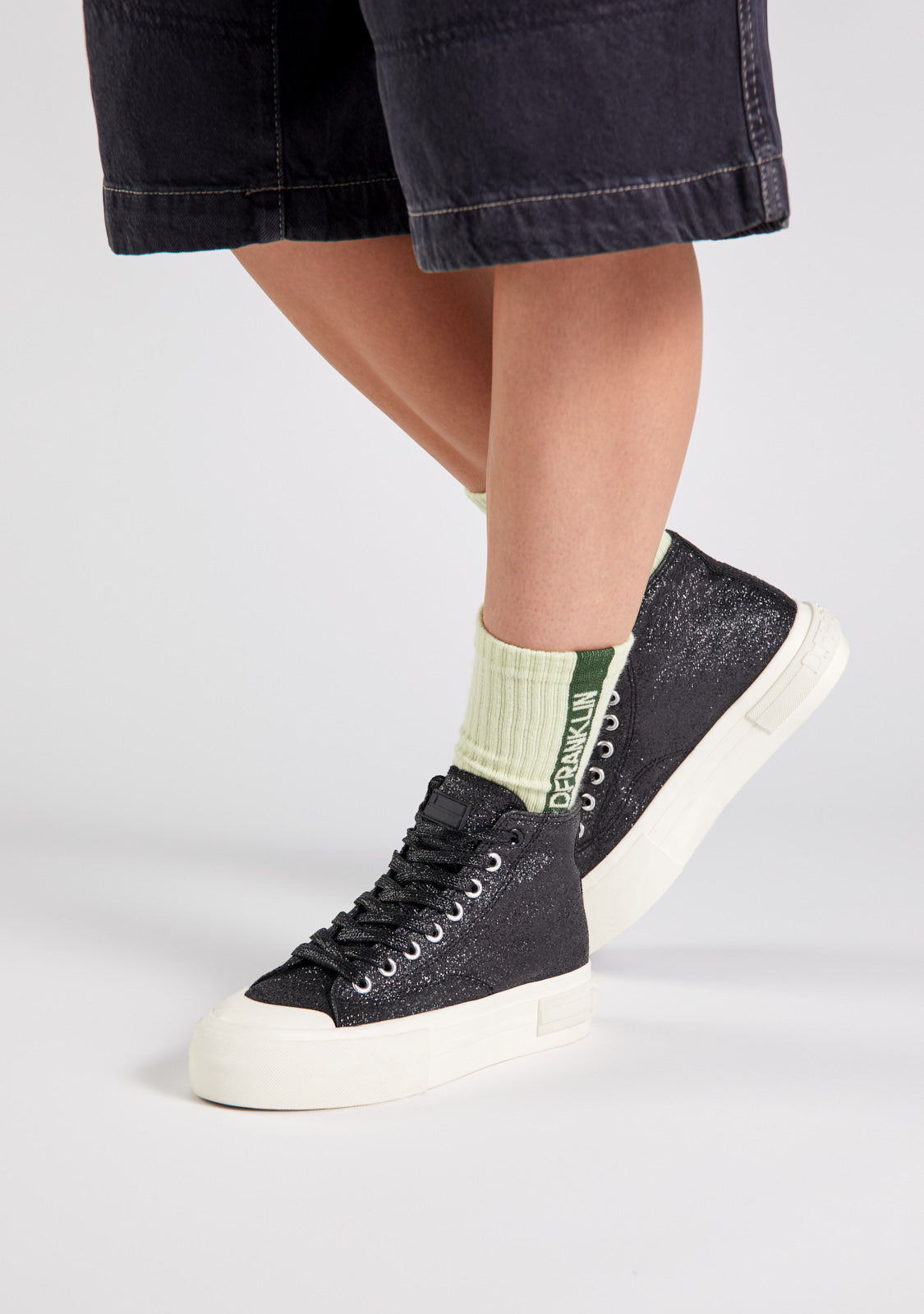 Scarpe da ginnastica con finitura glitter. Progettate per fare colpo nei tuoi outfit quotidiani. Un tocco elettrizzante per un look energico.