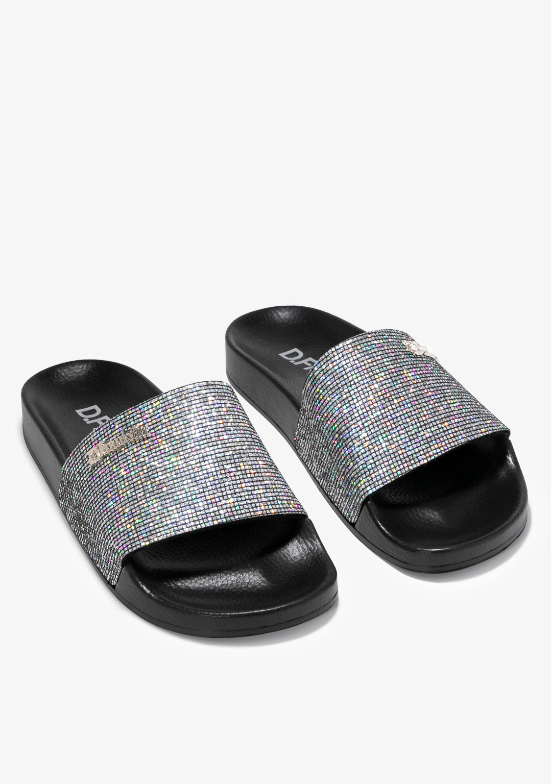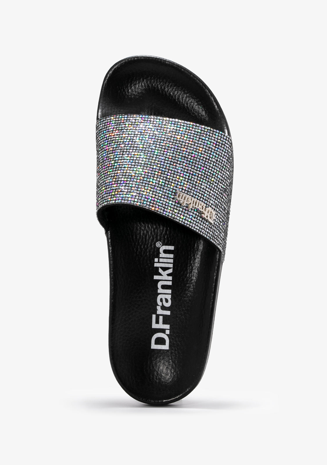 I sandali D.Franklin Pala Slide Patent presentano una larga cinghia sintetica con stampa glitter per una vestibilità sicura. Presentano anche il nostro emblema D.Franklin sulla parte superiore. Il design della soletta è modellato per adattarsi perfettamente alla forma del piede.