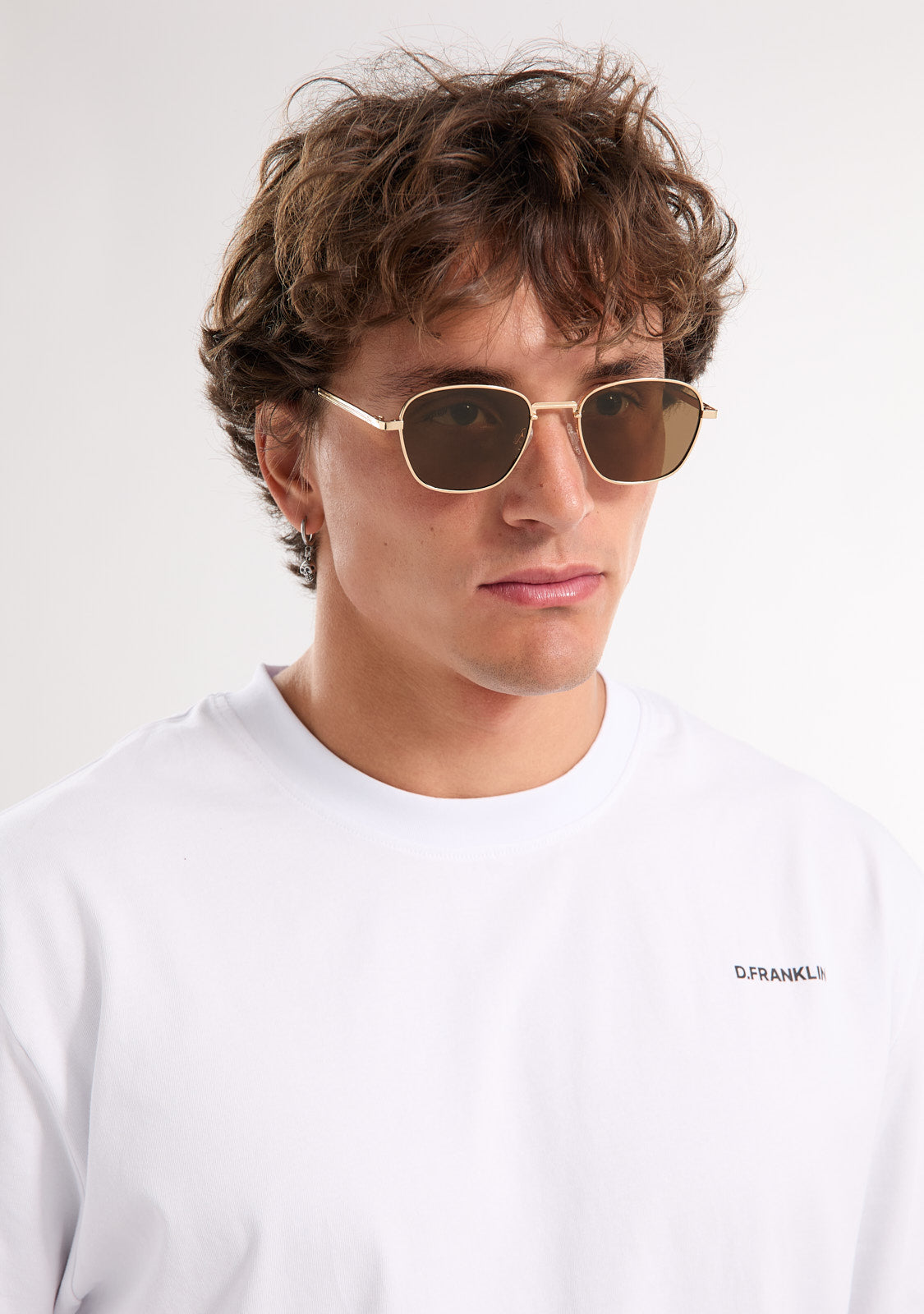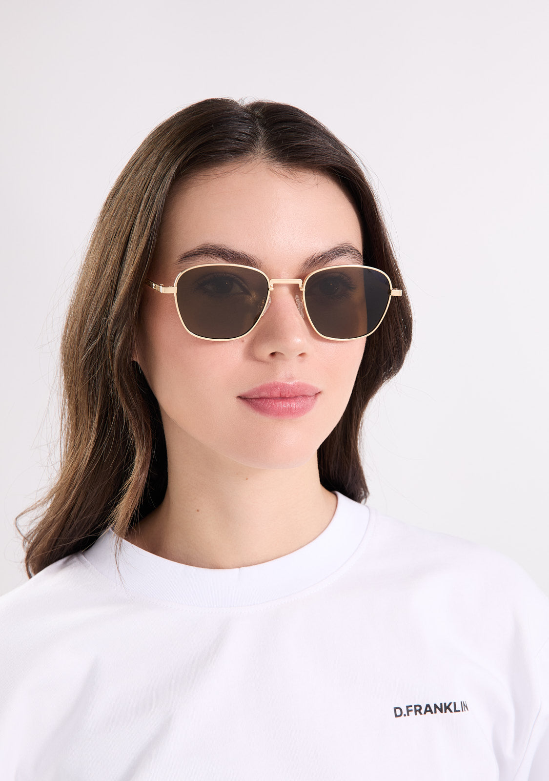 Gli occhiali da sole Quad Legacy Gold / Brown di D.Franklin si distinguono per il loro design senza tempo, realizzati con materiali di alta qualità per un uso quotidiano confortevole e durevole. La montatura in metallo garantisce sia resistenza che leggerezza, mentre le lenti in policarbonato offrono una protezione totale dai raggi UV.