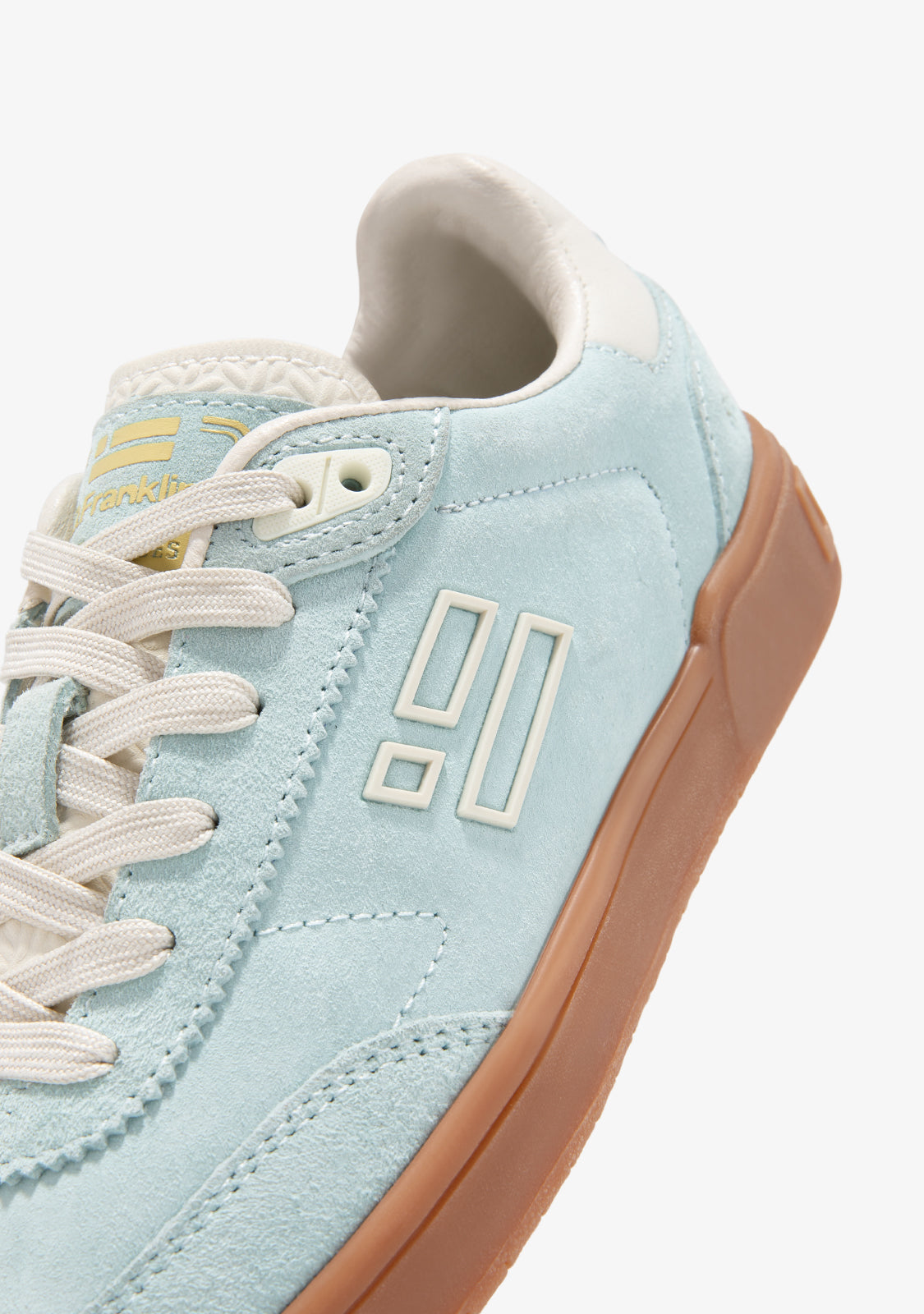 Il Rebel D.Franklin presenta una silhouette a taglio basso in tonalità azzurro chiaro. È caratterizzato da una selezione di dettagli che definiscono la sua essenza. Presenta un logo in rilievo sia sul tallone che sulla suola, una bandiera ricamata sul lato e il nome del design sul retro. La suola in gomma da 2 cm offre una presa e una trazione superiori.