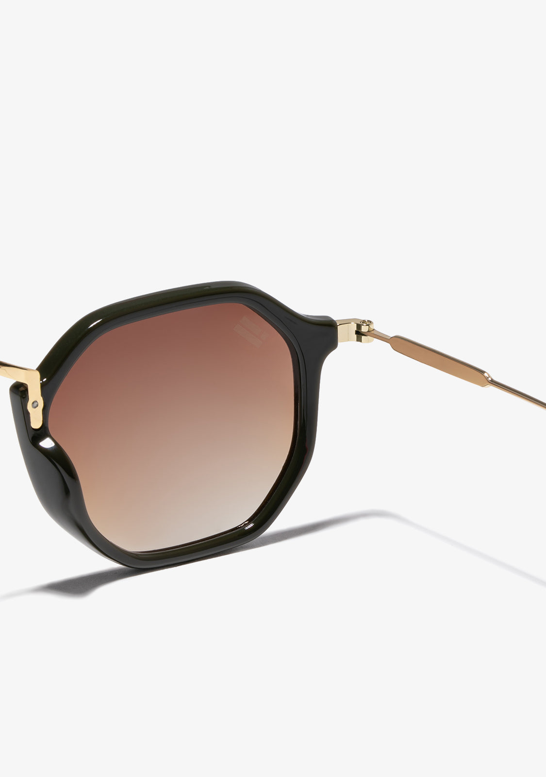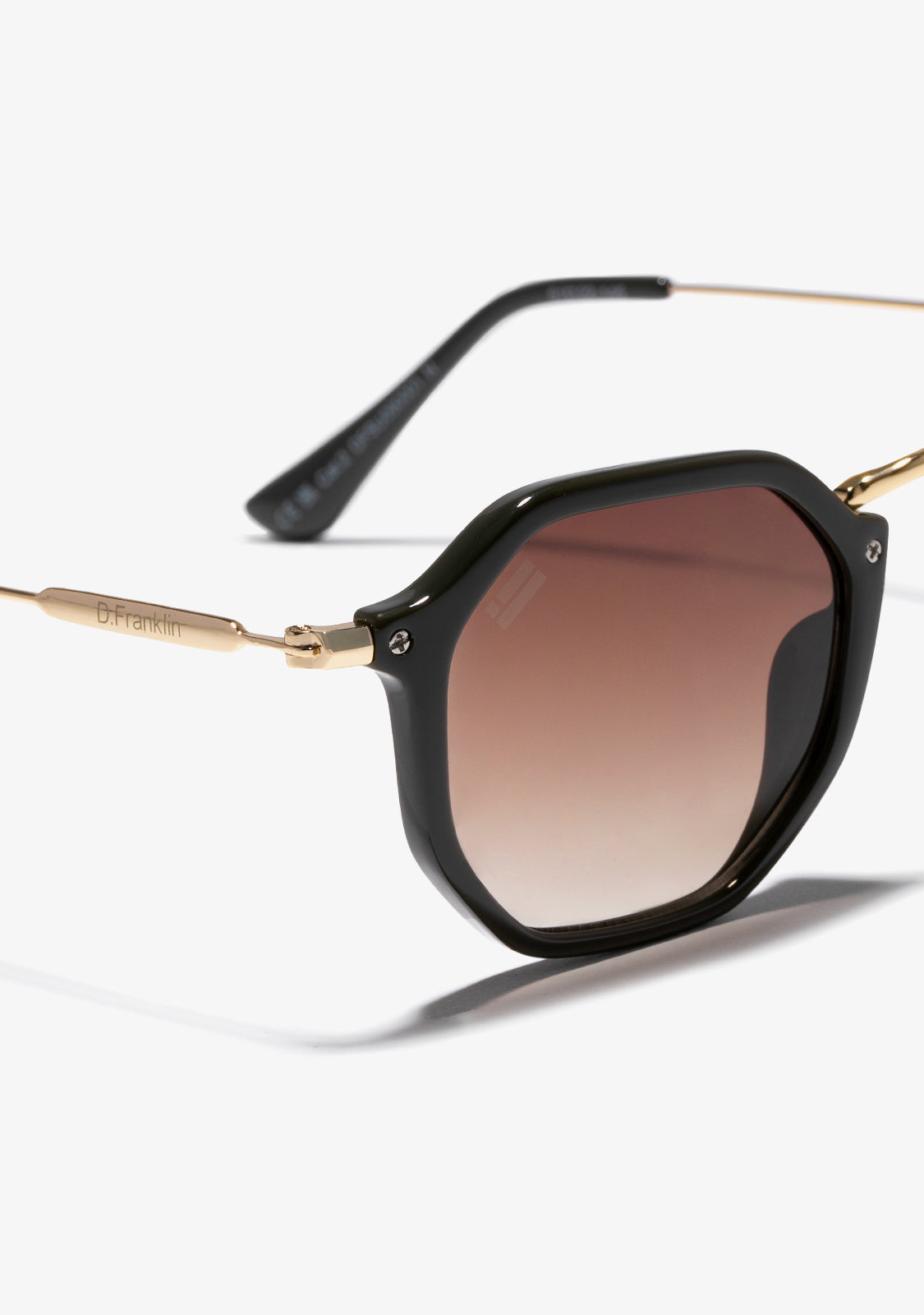Le lenti in policarbonato e un contorno ottagonale verde scuro rinforzano lo stile iconico. Presenta i nostri dettagli distintivi D.Franklin: il logo inciso su entrambe le astine in metallo e il nostro emblema sulla lente destra. Con una larghezza della lente di 51 mm e un frontale di 148 mm, questi occhiali esaltano i tratti di qualsiasi viso. Le astine in acciaio inossidabile sono lunghe 145 mm.