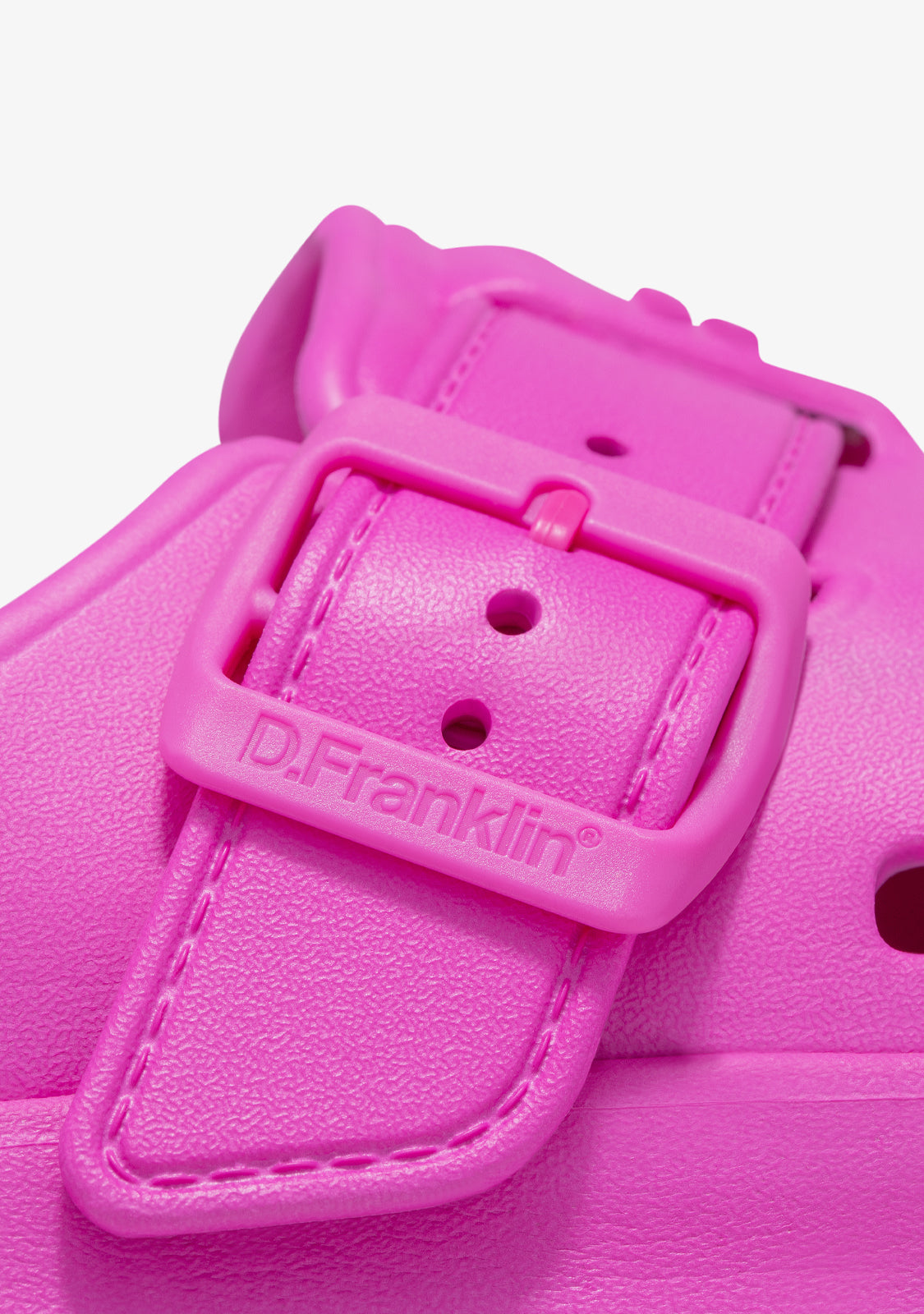 D.Franklin clog con doppia altezza. Alziamo l'asticella per un'icona estiva. Ridefinire l'estetica del costume da bagno.