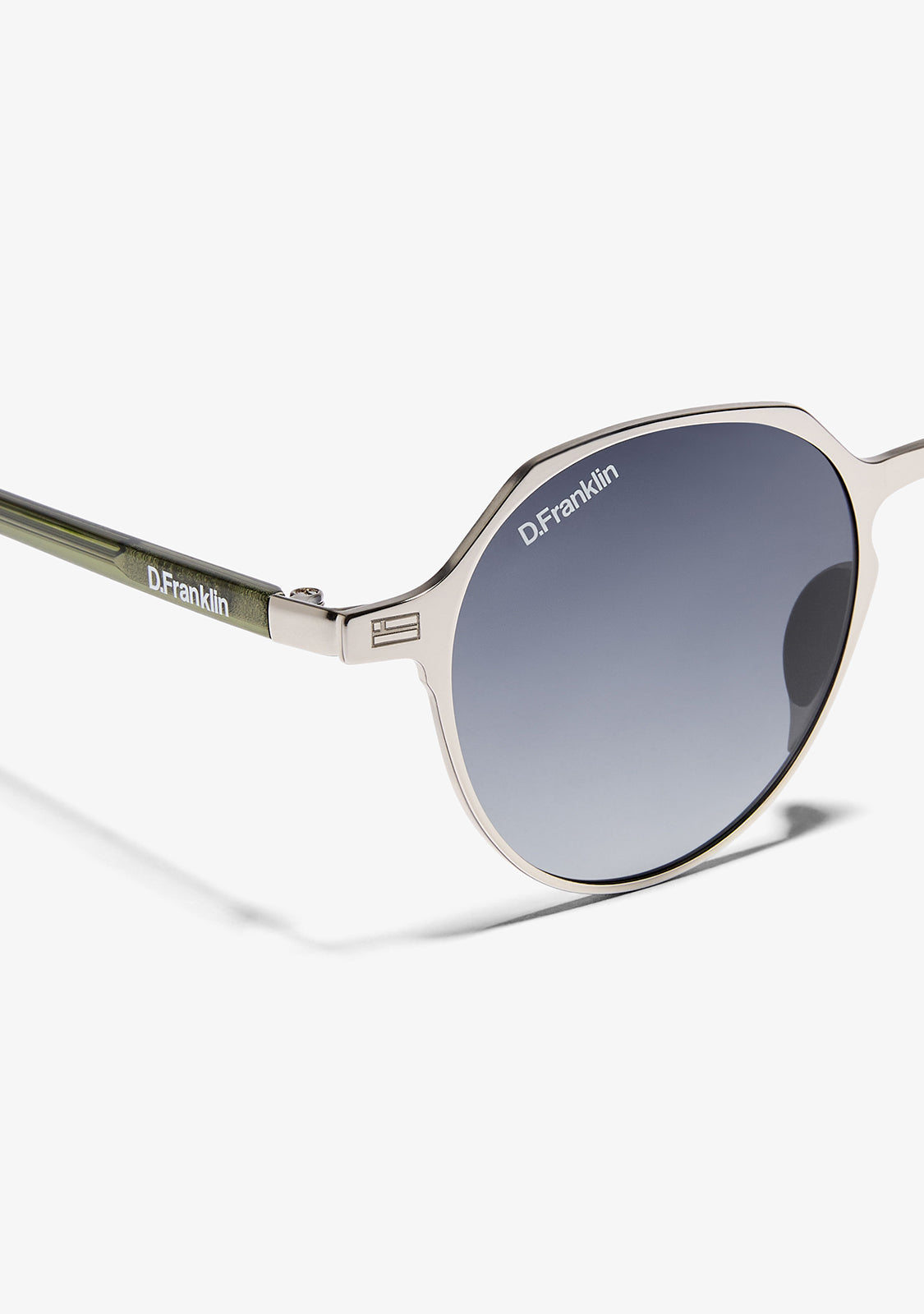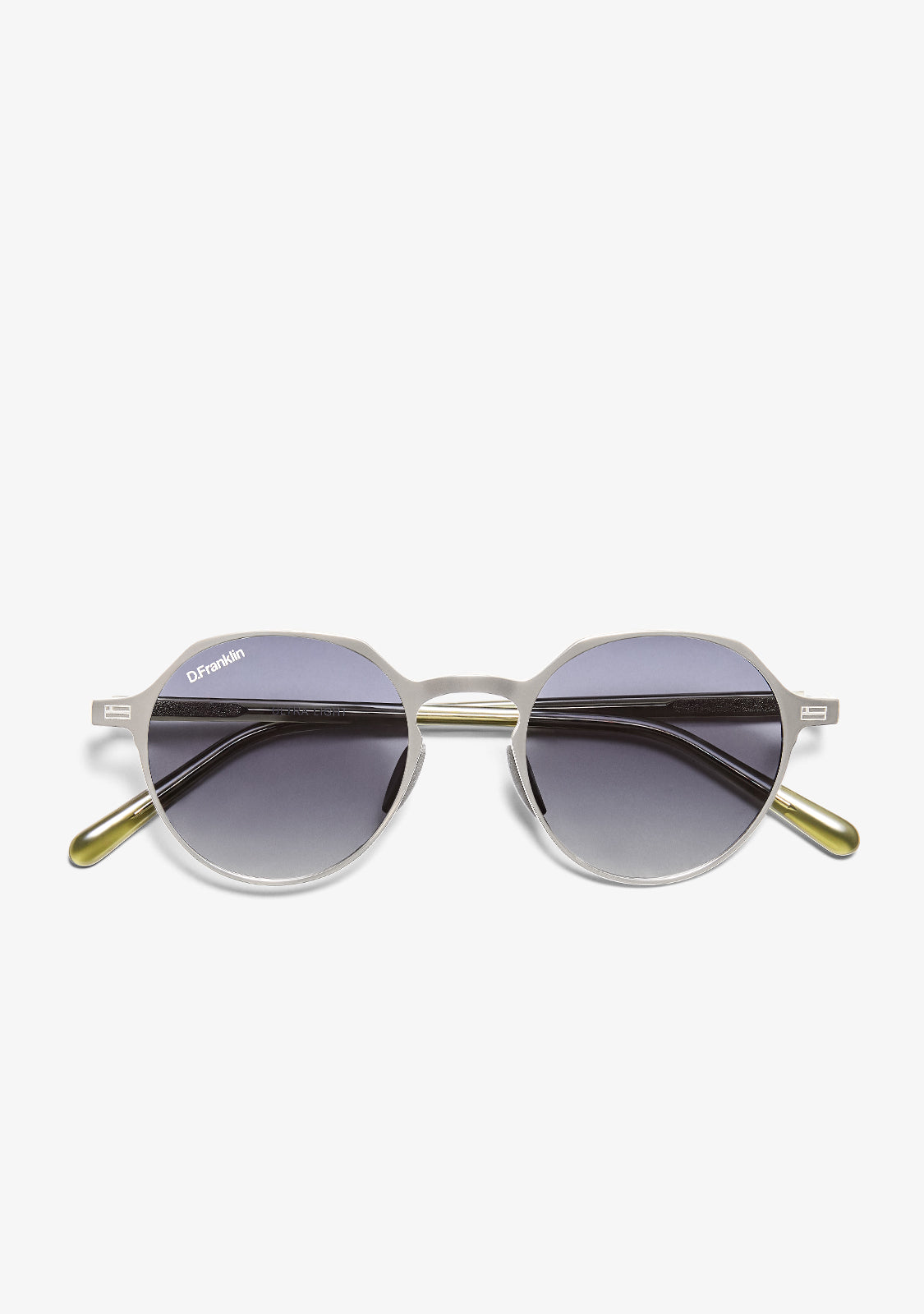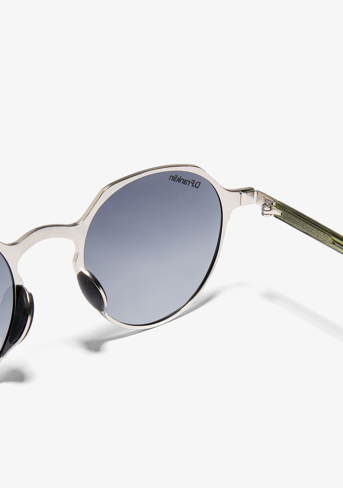 Ultra Light S Round Metal Silver / Gradient Smoke unisce un design classico a un tocco rétro, reinterpretato in una silhouette rotonda, minimalista ed elegante. La montatura in metallo argentato contrasta con aste verdi per una finitura moderna e originale.