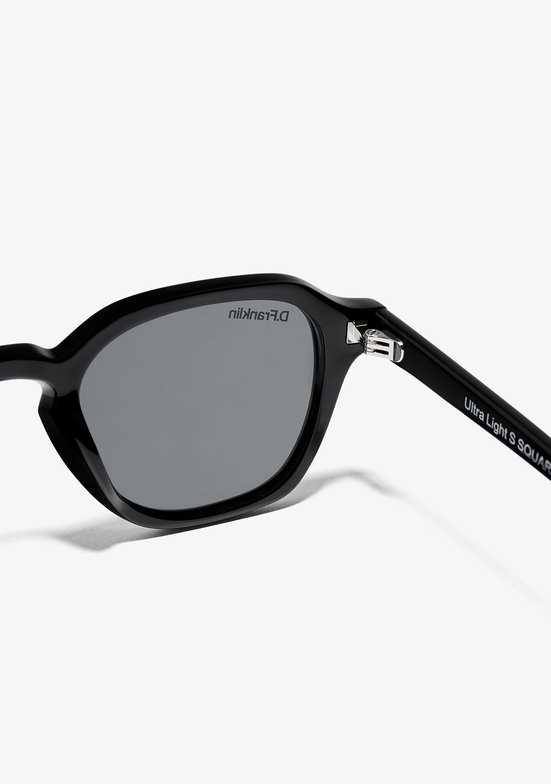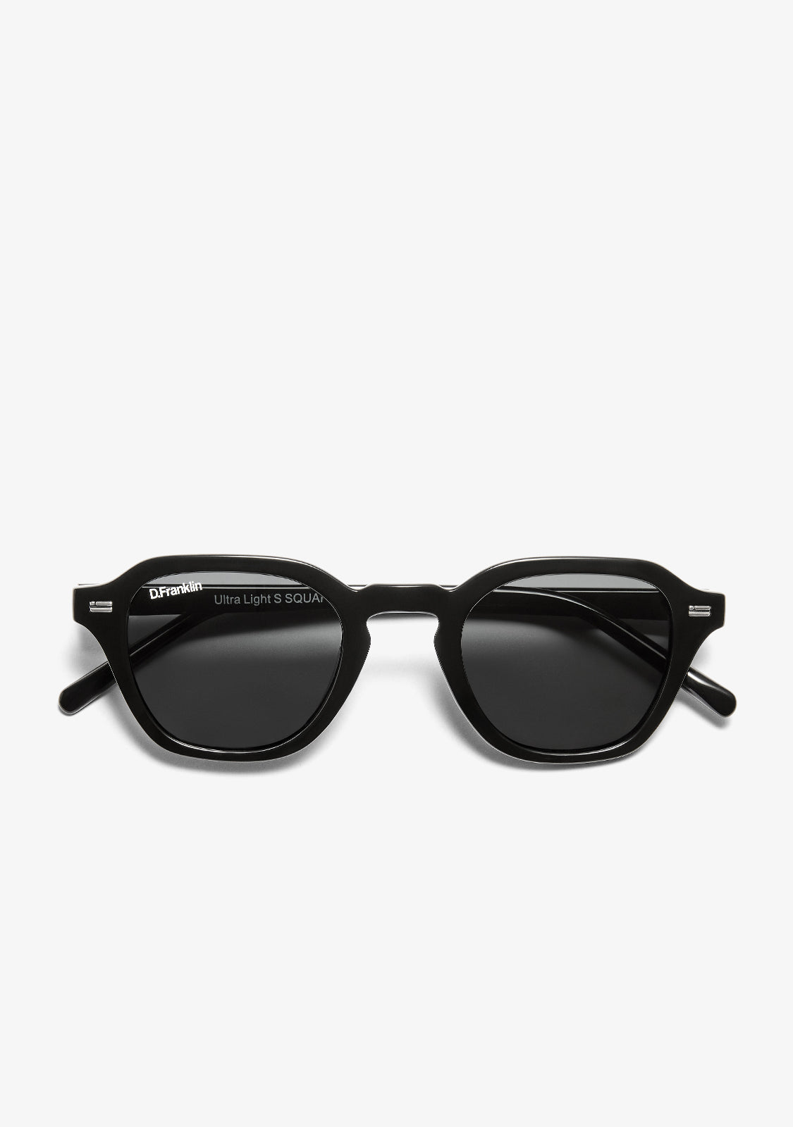 Gli occhiali da sole Ultra Light S Square Black / Black di D.Franklin combinano un design contemporaneo con una funzionalità avanzata. Realizzati con una montatura e un ponte in TR90, questi occhiali sono leggeri ma resistenti, mentre le astine in acetato offrono una vestibilità confortevole e un tocco sofisticato.