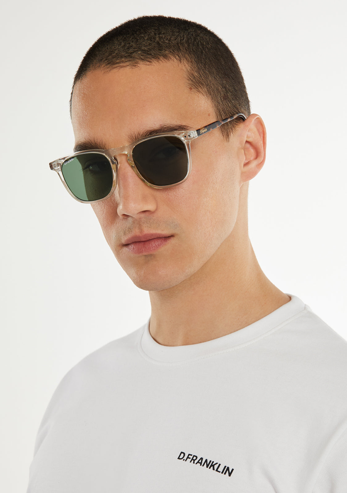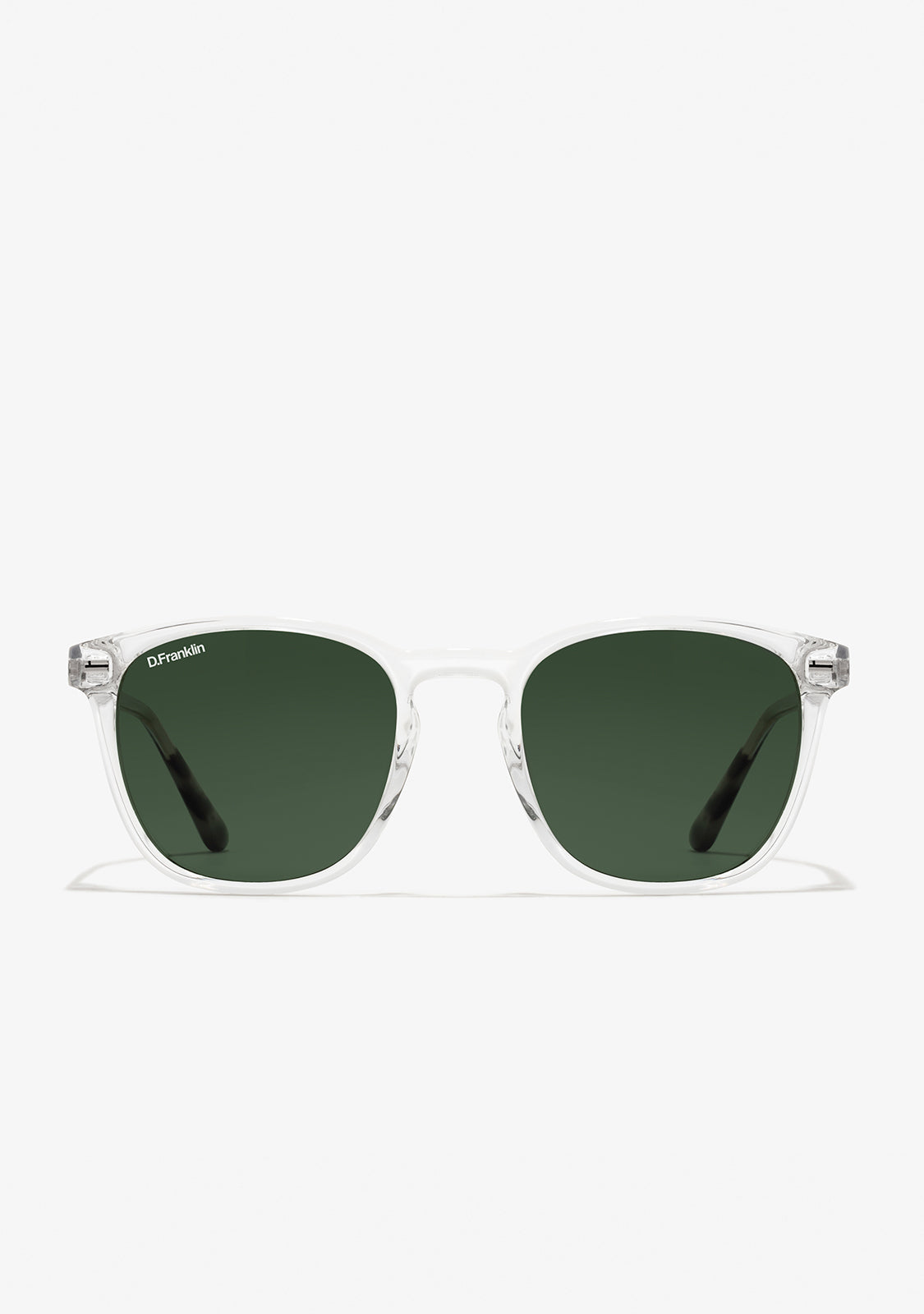 Il nostro modello Ultra Light SQ High con finitura trasparente presenta i dettagli distintivi di D.Franklin: logo inciso su entrambe le aste e il nostro emblema sulla lente destra. La larghezza della lente è di 52 mm e la parte frontale è di 144 mm. Le aste laterali sono lunghe 145 mm.