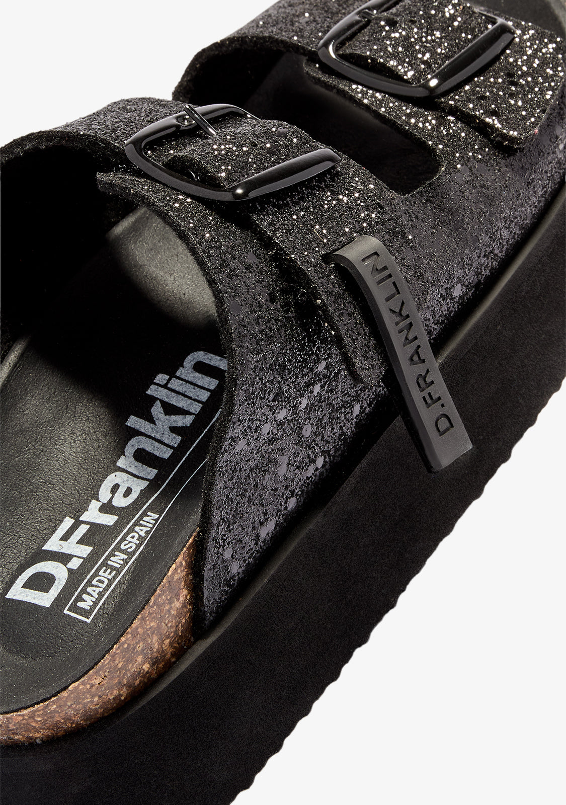 Scopri il perfetto equilibrio tra stile e comfort con i sandali Vibe Sandals Buckle Platform Black Glitter di D.Franklin. Offrono una finitura premium che completa qualsiasi look.