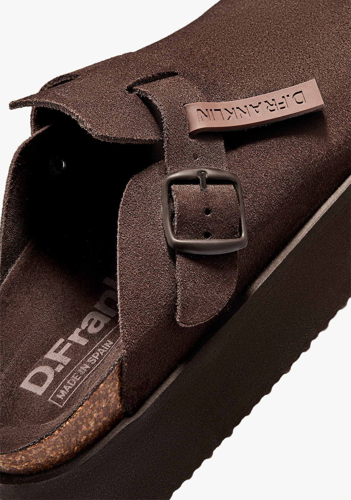 Scopri il perfetto equilibrio tra stile e comfort con i sandali Vibe Sandals Clog Platform Suede Chocolat di D.Franklin. Realizzati in morbido suede, offrono una finitura di alta qualità che completa qualsiasi look.