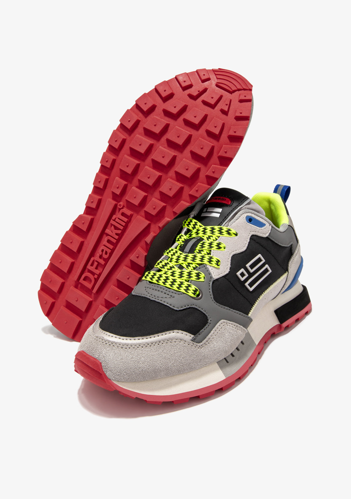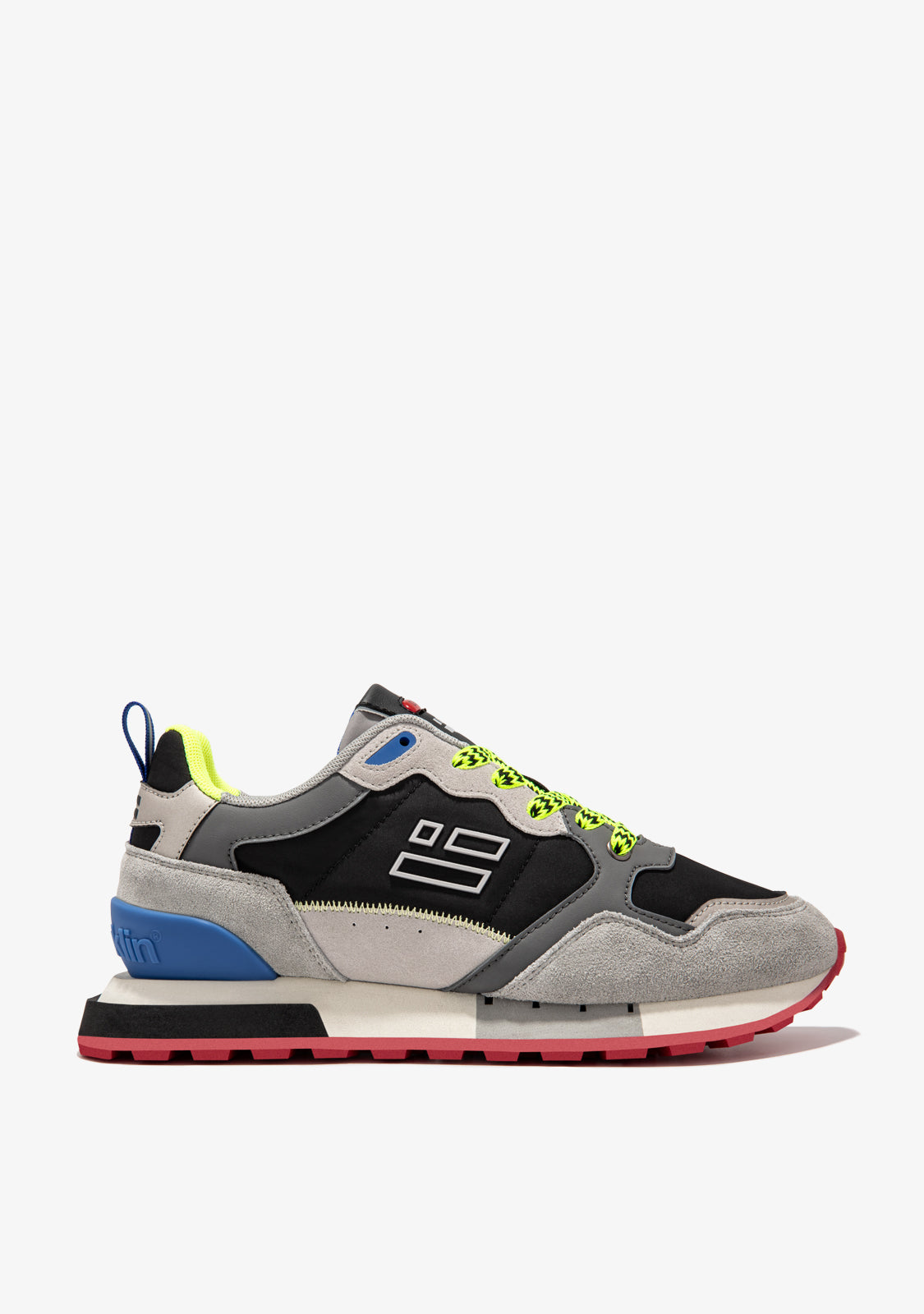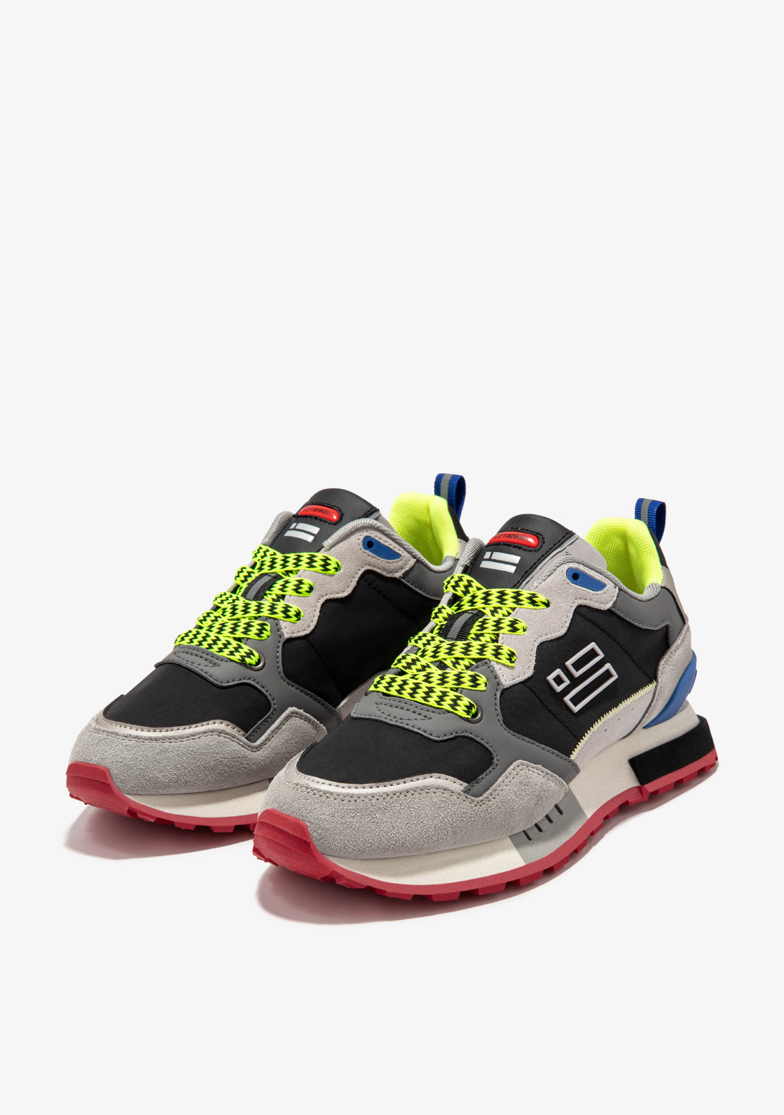 Queste sneakers sono realizzate con dettagli in nero, blu navy, rosso e verde. Presentano anche lacci stampati in verde e nero. Hanno una suola in TR e una suola a piramide per un comfort e una trazione migliorati. L'area della punta ha un pezzo di punta misto per una maggiore flessibilità. Il nostro emblema si trova sul davanti e sul lato, così come sul retro.